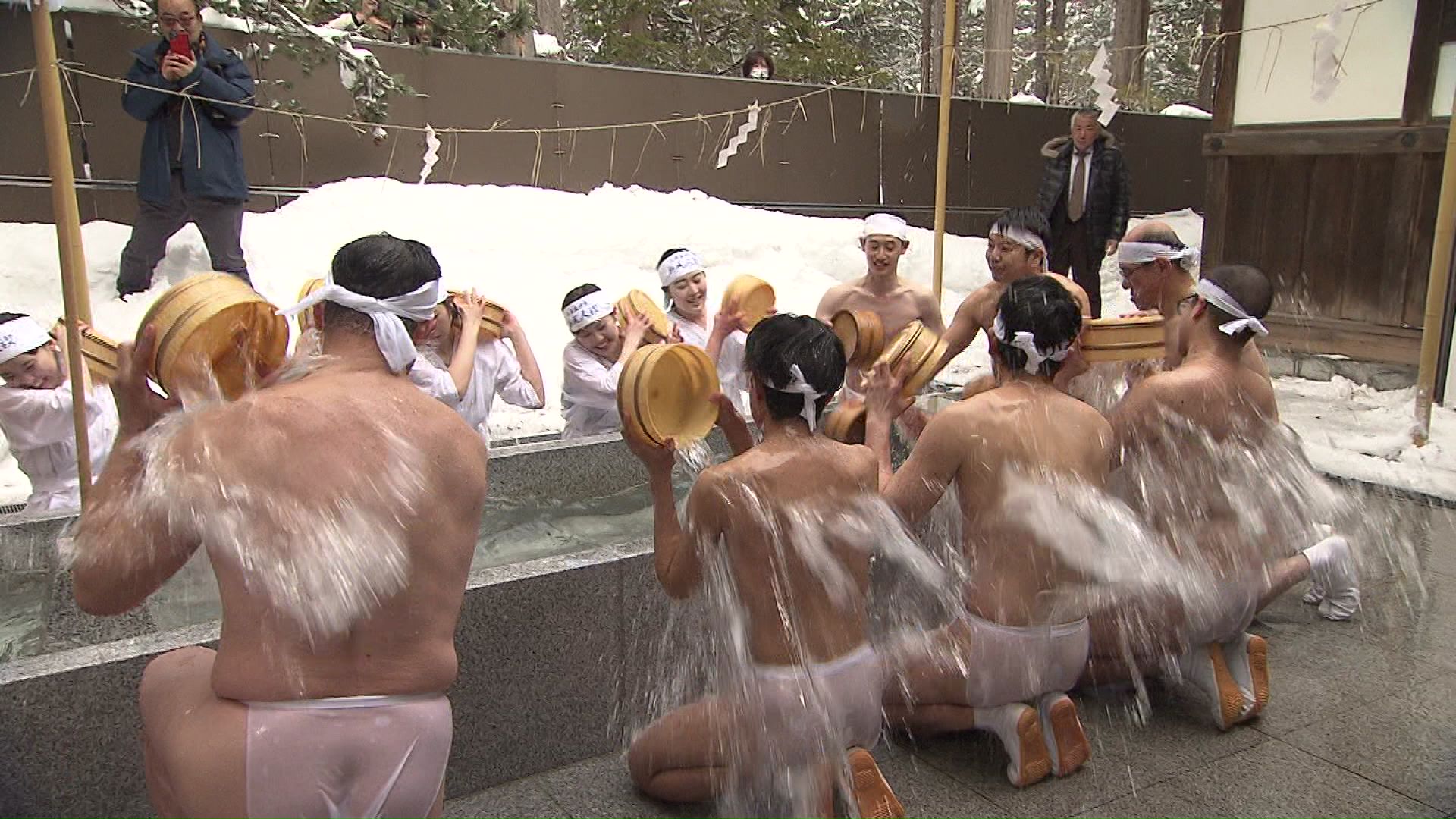 2025年に二十歳を迎えたばかりの19人が、桶ですくった冷たい水を20回かぶり、心身を清めました。中には冷たさに耐えられない人も…