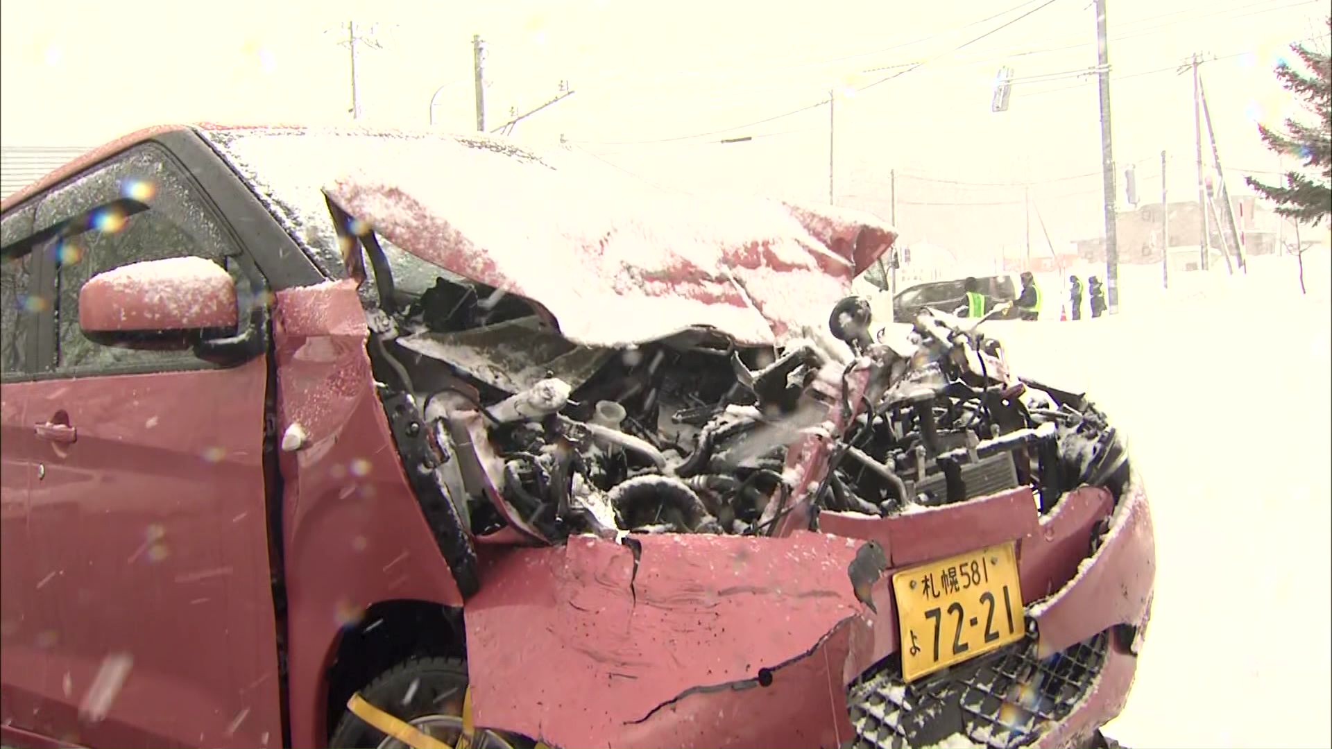 【赤信号を無視か】“フロントが大破”軽乗用車が交差点でトラックに衝突…60代女性と50代男性が搬送‐札幌市南区