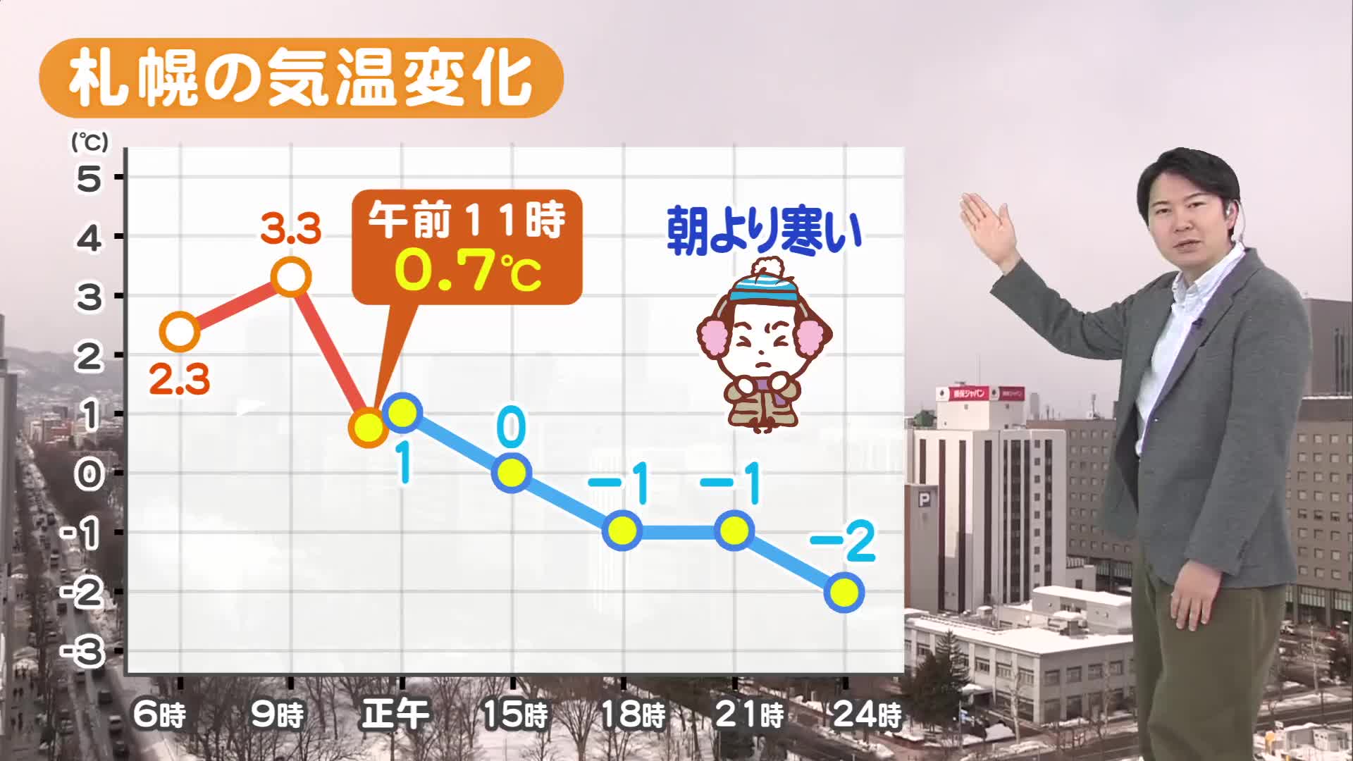 札幌は時折、雪が降る程度で、多くて5センチの予想です。