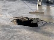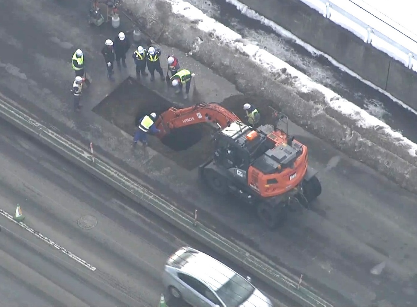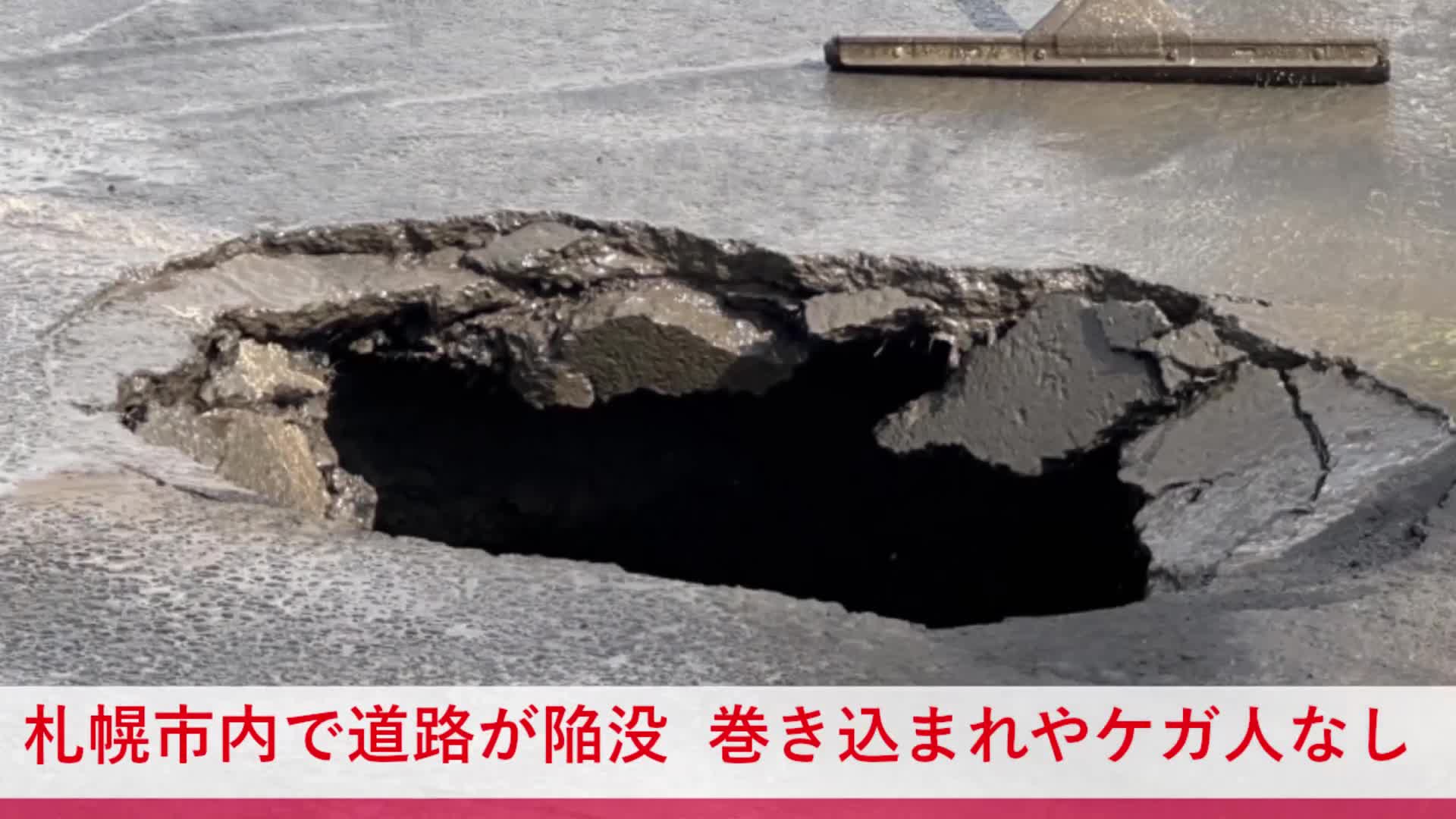 【映像】札幌市でも道路が陥没!片側2車線の道路の中央付近にポッカリと穴ボコが_50センチ四方、深さ2メートルの大きさ_交通量の多い路線で発生するも車の巻き込まれやケガ人なし‥原因は不明 札幌市清田区