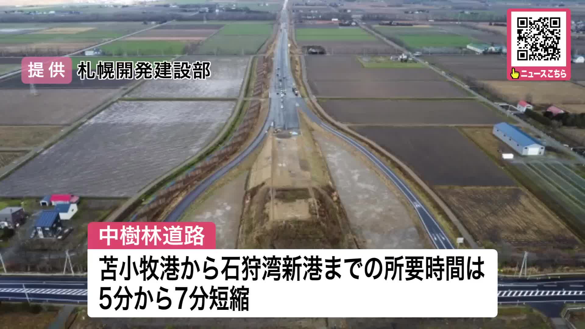 苫小牧港から石狩湾新港までの所要時間は5分から7分短縮される見込みで、海外への輸出が増えている海産物などをより早く物流拠点に運ぶことができまるようになります。