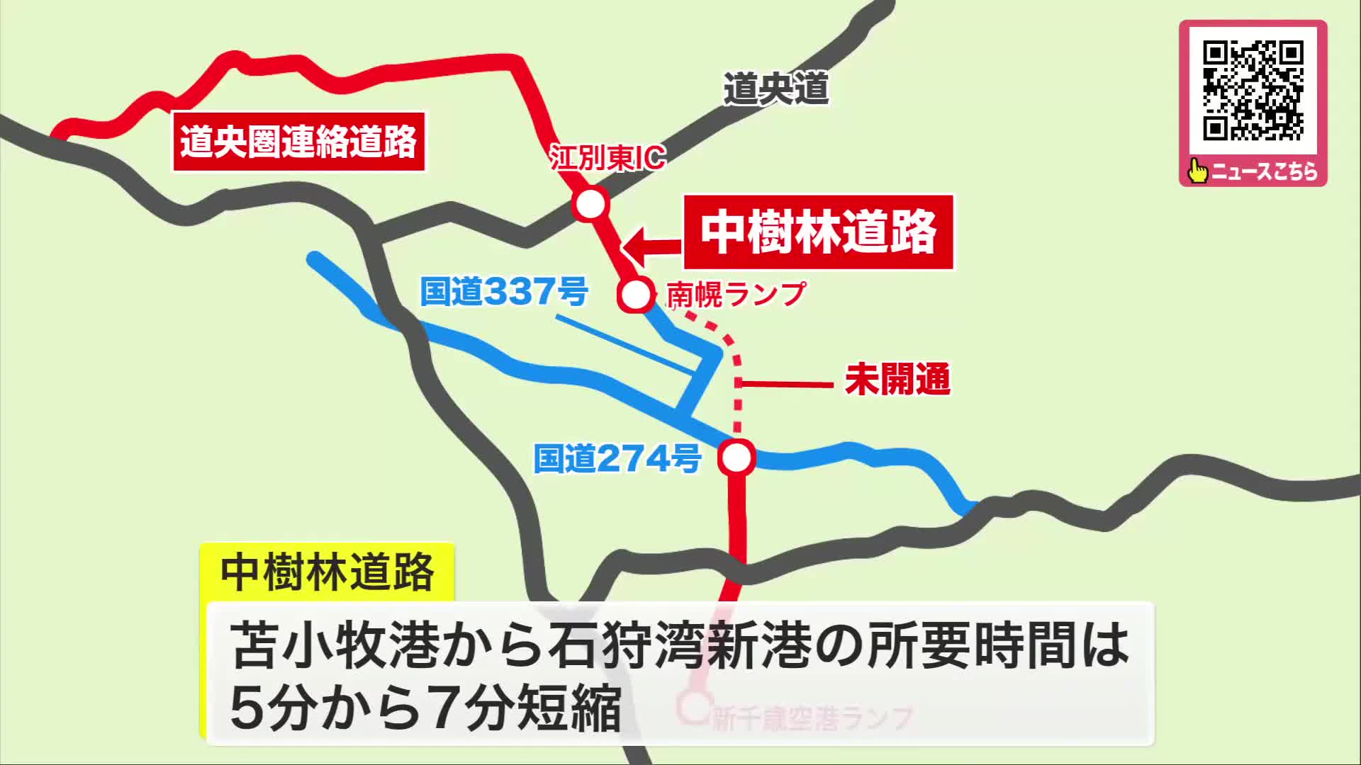 苫小牧港から石狩湾新港までの所要時間は5分から7分短縮される見込みで、海外への輸出が増えている海産物などをより早く物流拠点に運ぶことができるようになります。