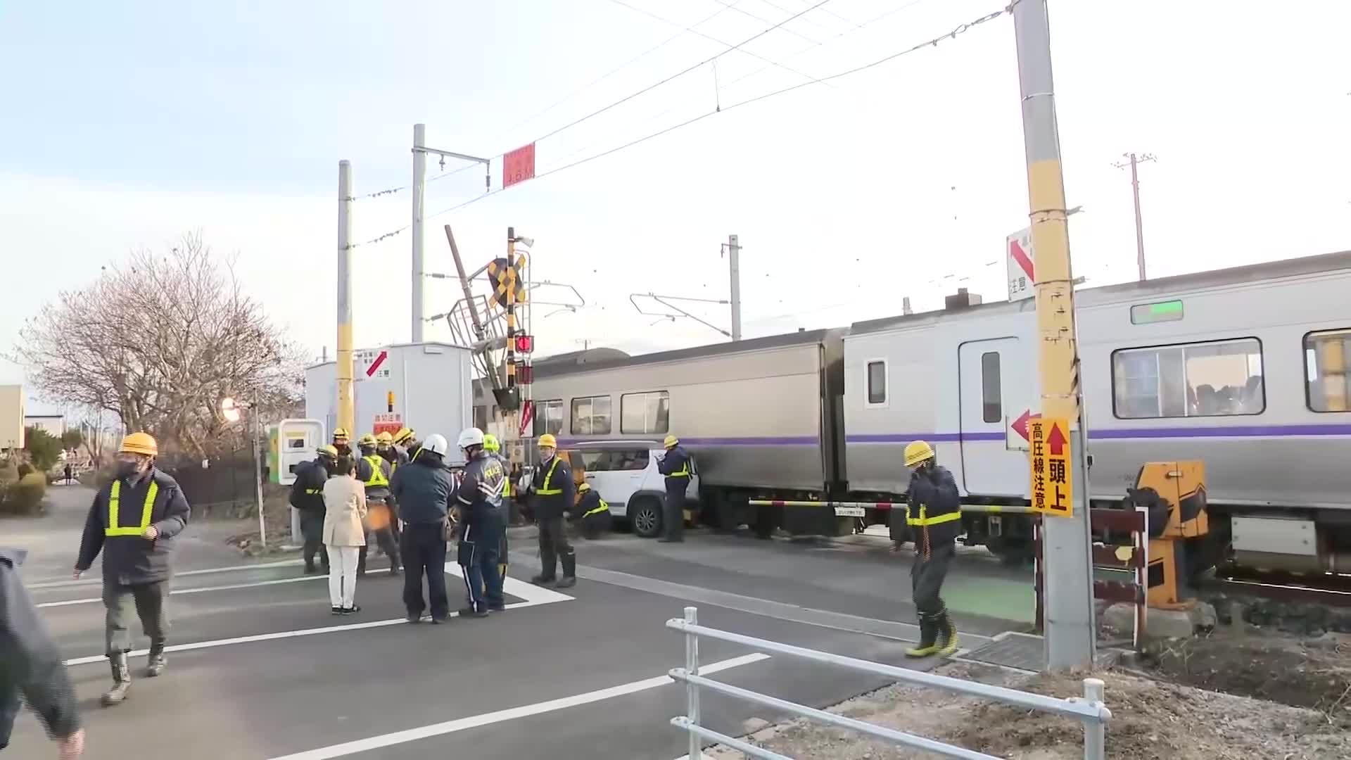 軽乗用車には2人が乗っていましたが、逃げてけがはなく、列車の乗客と乗員にもけがはありません。
