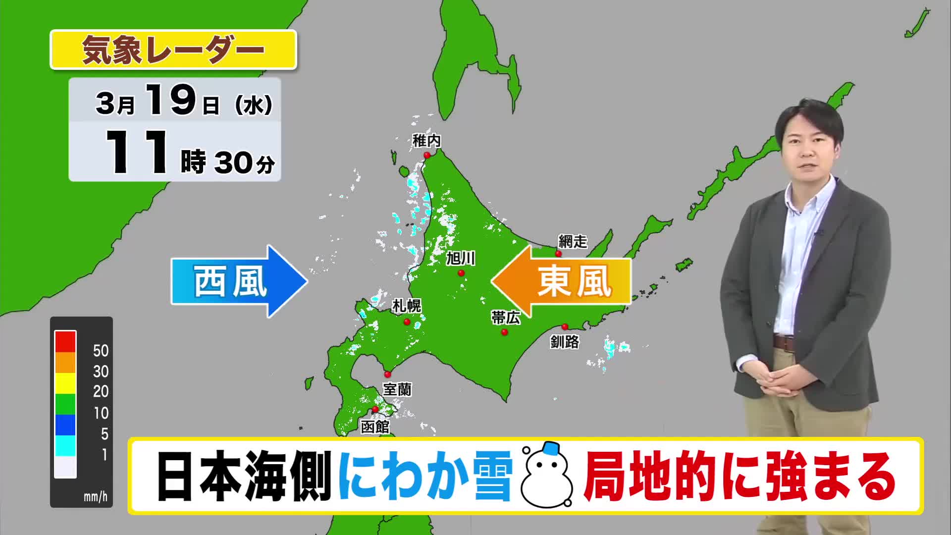 日本海側でにわか雪…道北はうっすら新雪も!きょうも路面はでこぼこ・つるつる 足元注意!【北海道の天気 19日(水)】