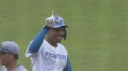 考案した高校生も参加した3月20日のイベントでは、ファイターズOBの谷口雄也さんが試食しました。