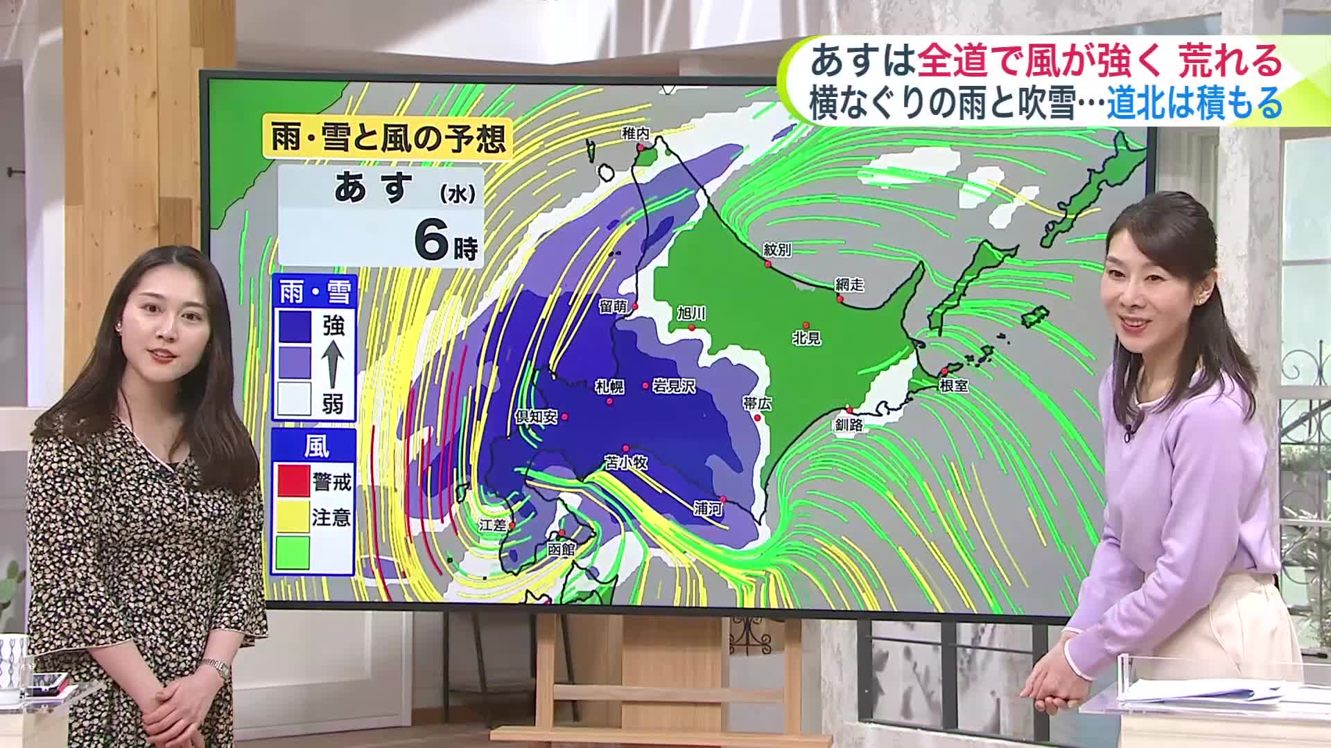 道北やオホーツク海側は湿り雪で、ふぶくでしょう。