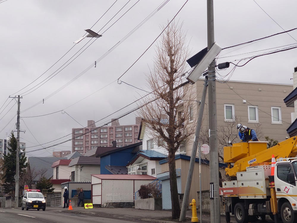 札幌市で3月26日午後、風で飛ばされたとみられる金属板が電線に引っ掛かり、一時交通規制が敷かれました。