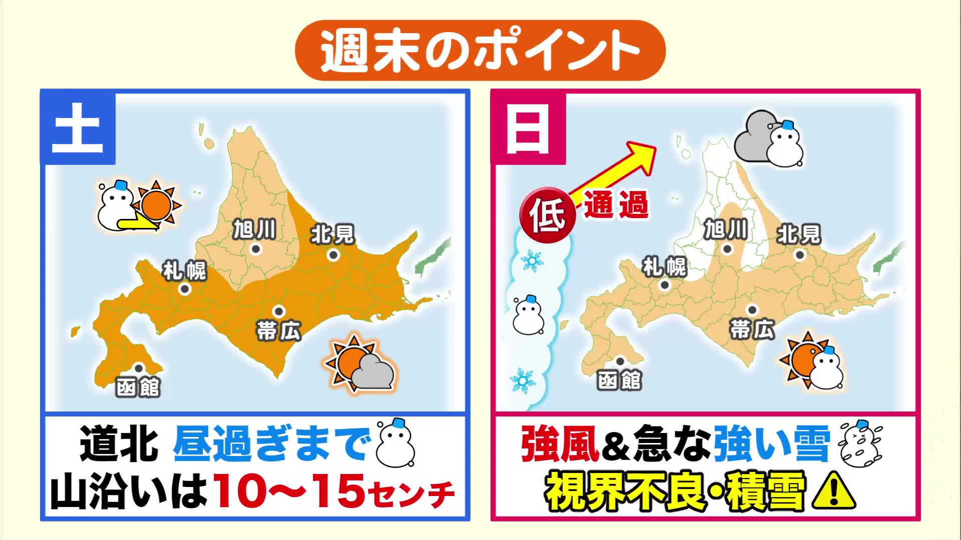 最高気温は、稚内から網走にかけては1℃から2℃で寒くなりそうです。