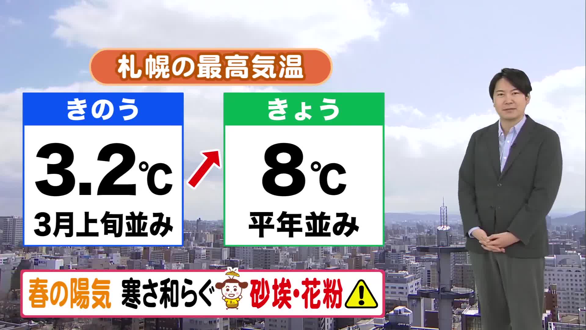 【春の陽気】きのうより5℃前後上昇!砂ぼこり・花粉に注意…週中ごろは寒さ戻り吹雪・積雪も【北海道の天気 4月1日(火)】