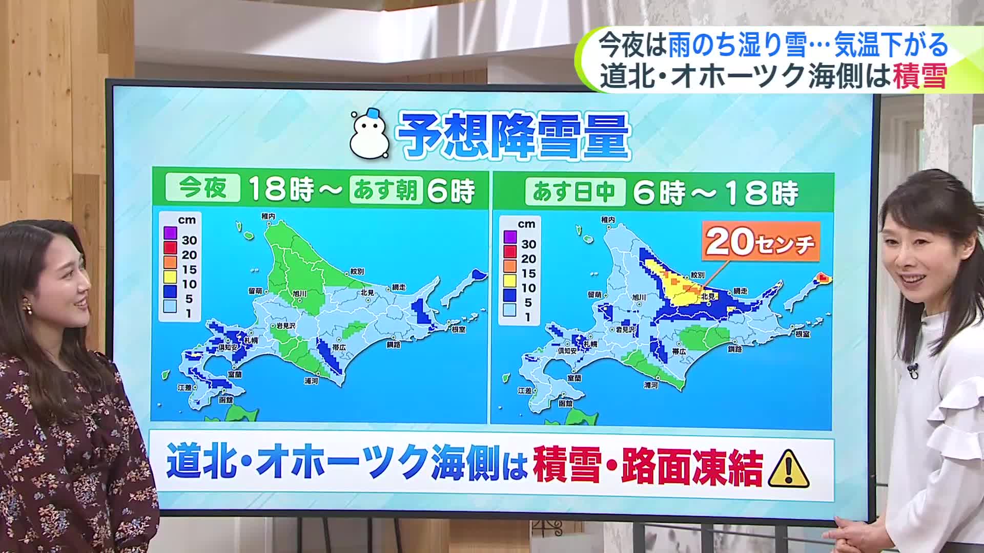 札幌の最高気温は4℃、紋別は0℃で、遠軽町は一日中マイナスの真冬日です。