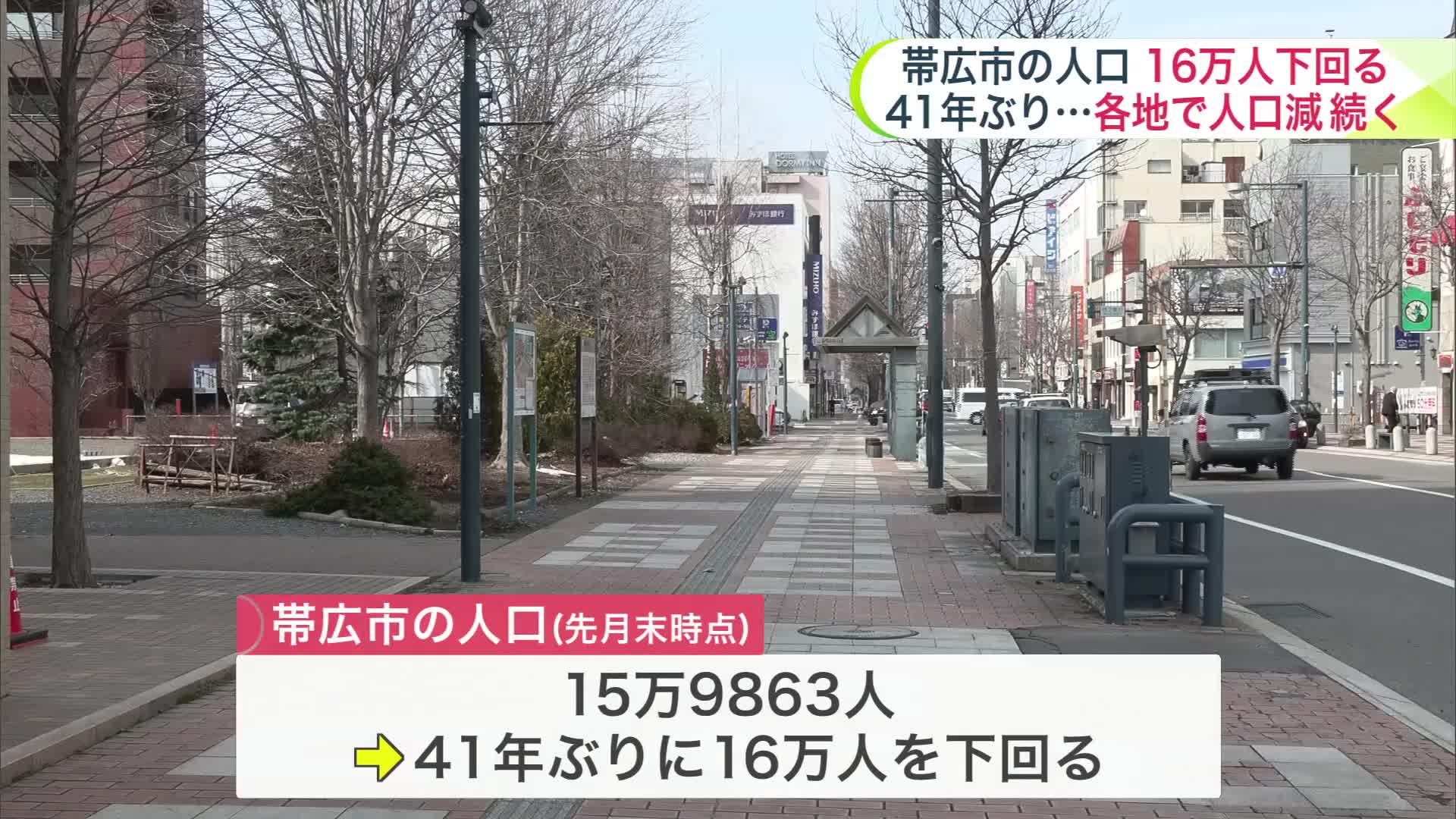 北海道内5番目の都市・帯広市の人口が3月末時点で15万9800人あまりとなり、41年ぶりに16万人を下回りました。