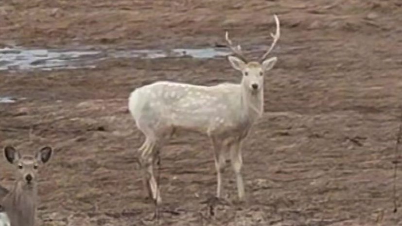 4月5日、白いシカを発見した男性がドローンを飛ばし、近くから撮影することに成功しました。