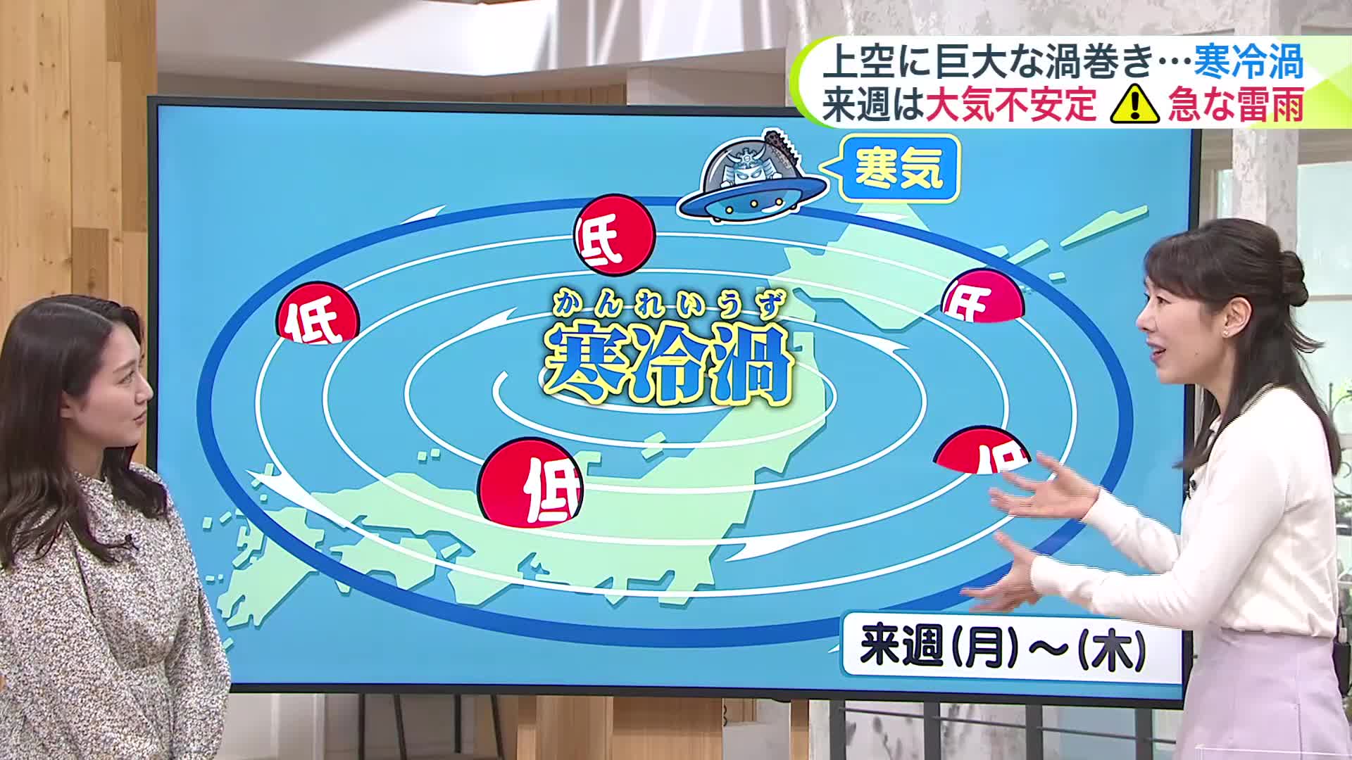 “寒冷渦”が通過するため、大気の状態が不安定です。