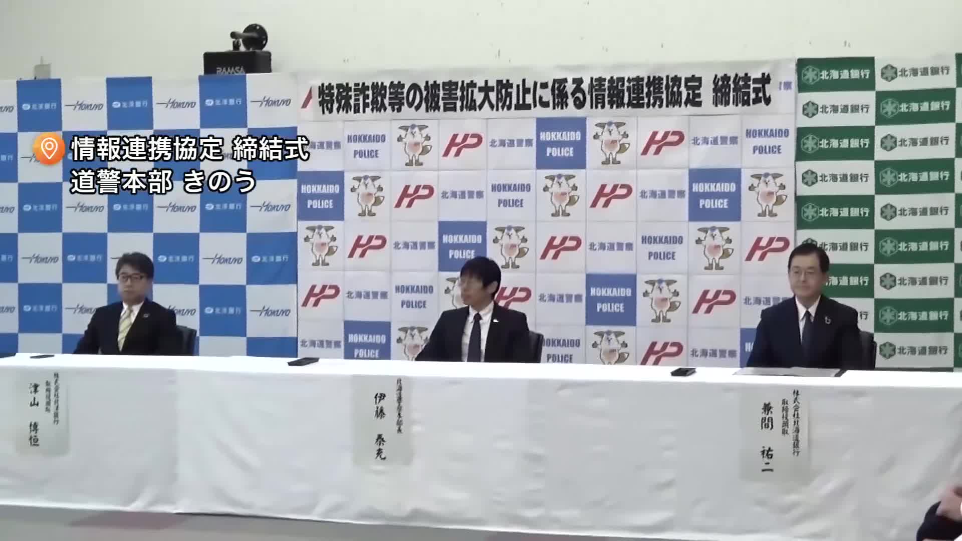 相次ぐ詐欺被害の防止に向け道内の銀行と道警が不正が疑われる口座などの情報共有に向けた協定を結びました。