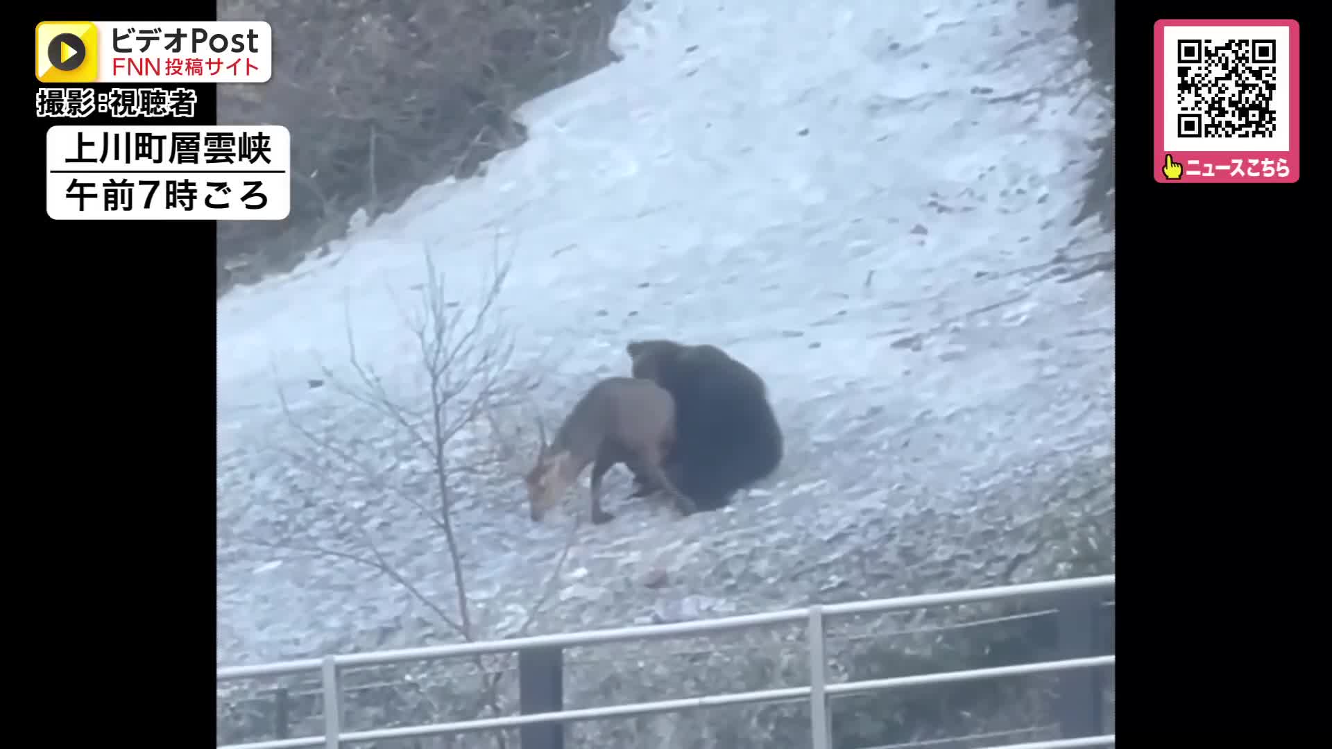 北海道北部の上川町の層雲峡で4月12日、シカを襲うクマが目撃され、警察が注意を呼び掛けています。