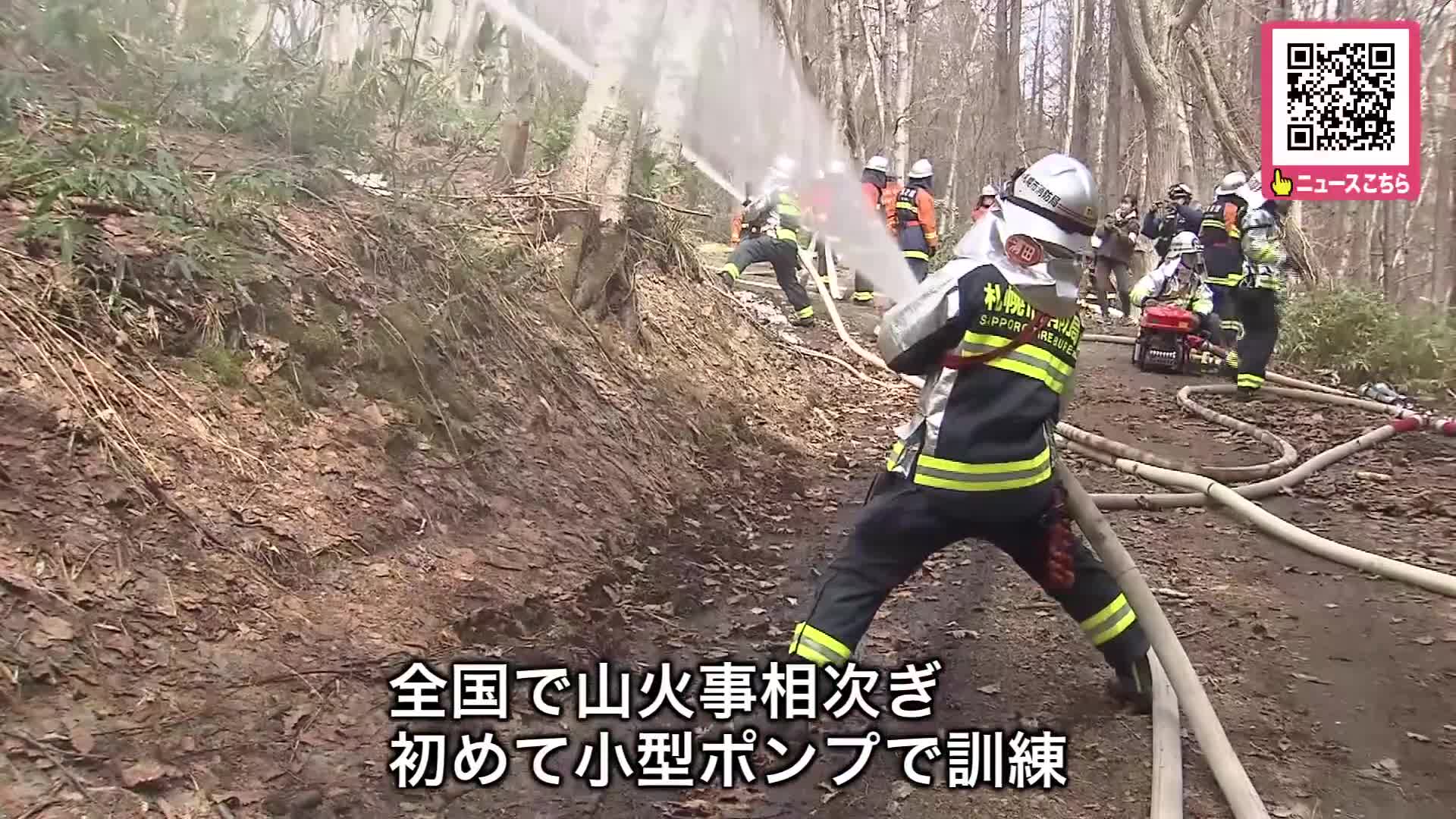 全国で”大規模な山火事”相次ぐ中_非常事態に備え札幌市も訓練…消防車が入っていけない場所を想定し今回初めて”小型ポンプ”での消火活動を実施