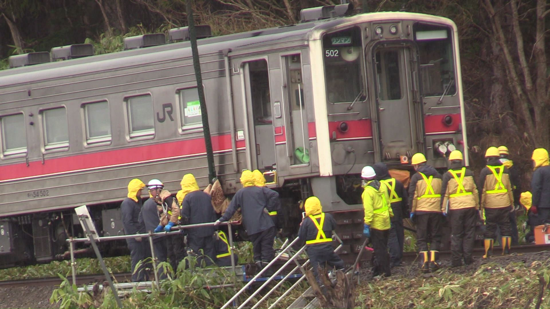 4月8日、JR宗谷線で盛り土が崩落し普通列車が脱線した事故。