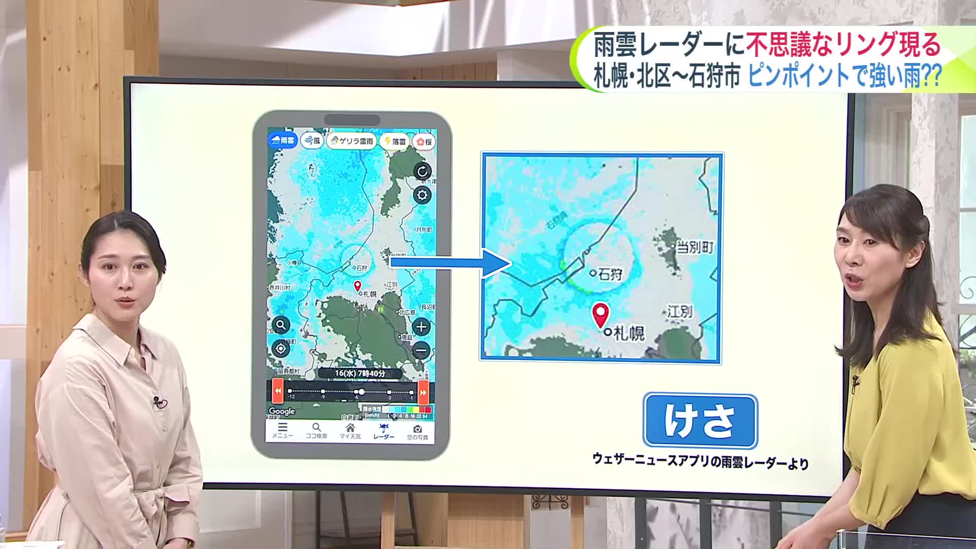 【不思議なリング】札幌北区~石狩市の上空に出現!けさの雨雲レーダーが捉える…そのメカニズムは?【菅井さんの天気予報 16日(水)】