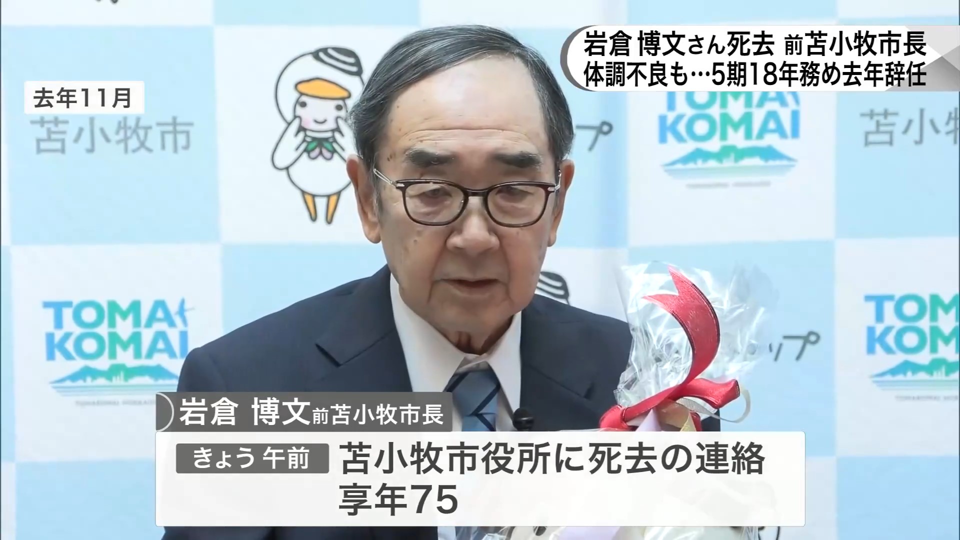 北海道苫小牧市の市長を5期18年務めた前の市長、岩倉博文さんが亡くなりました。75歳でした。