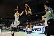 そして第3Qでは盛實海翔選手が2本の3点シュートで2桁リードに持ち込み、