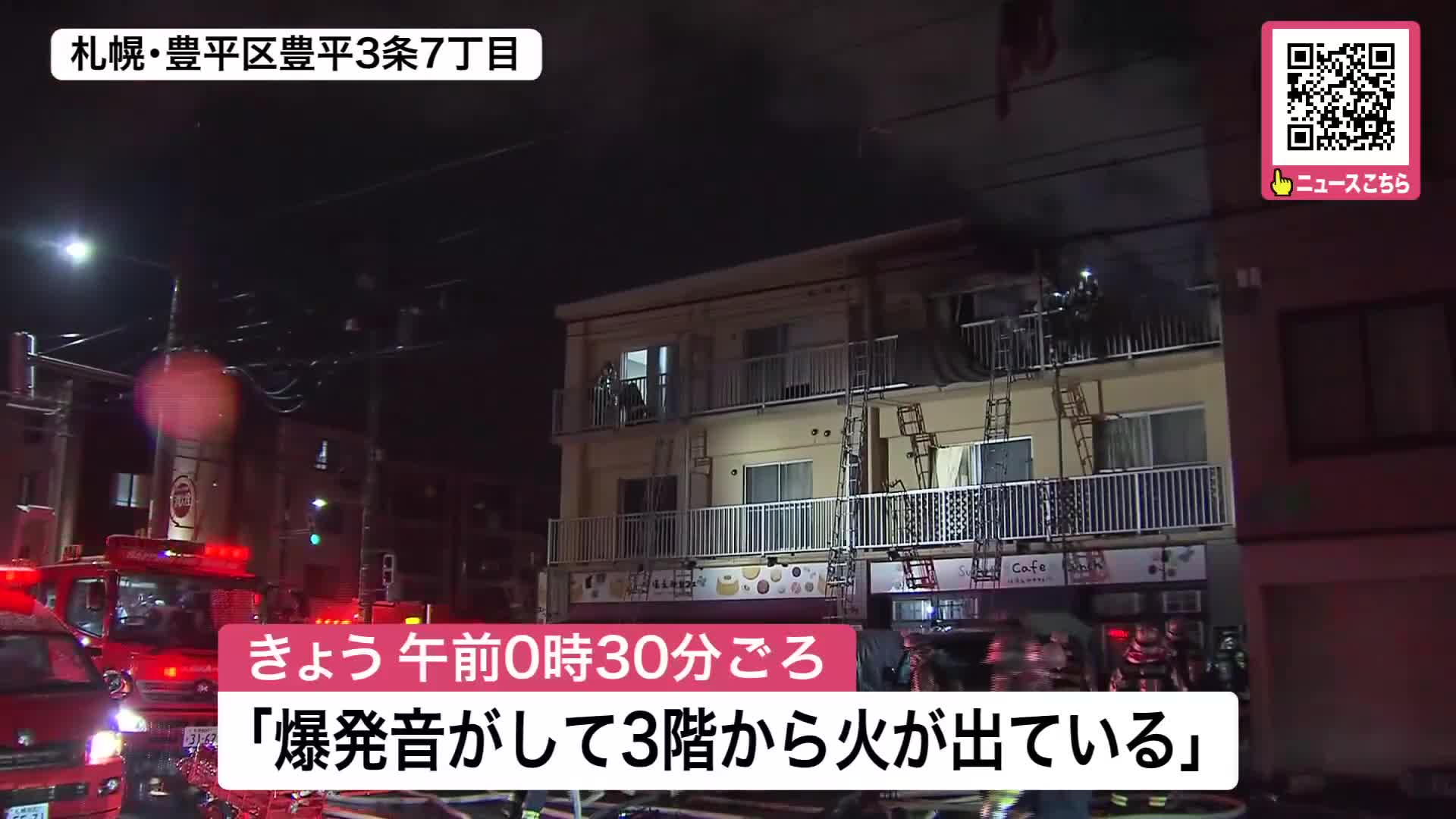 20日午前0時半ごろには札幌・豊平区豊平3条7丁目の3階建てアパートで「爆発音がして3階から火が出ている」と消防に通報がありました。
