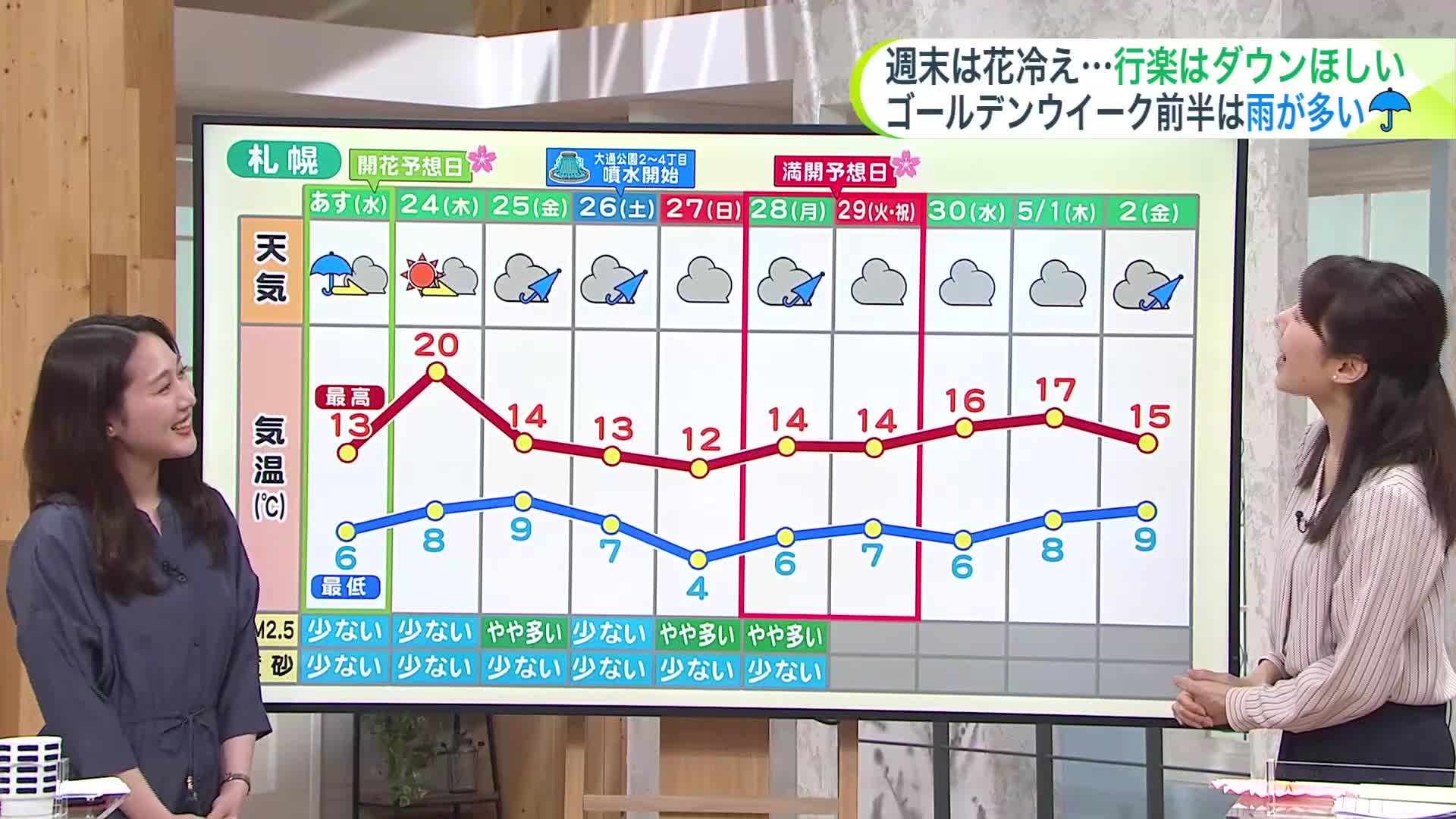 【ゴールデンウィークの天気】お花見はダウンで防寒対策を…札幌や函館はサクラ見ごろも週末は花冷え【菅井さんの天気予報22日(火)】