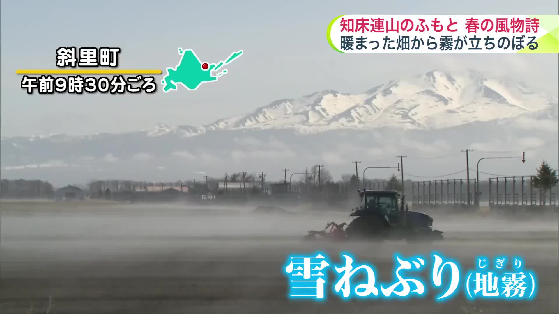 けさは知床連山の麓の畑で、“雪ねぶり”が発生しました。
