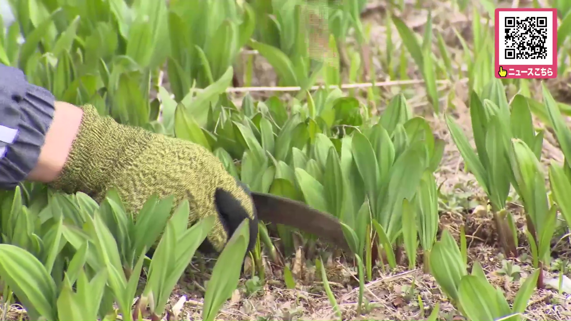 北海道・日高町の農園ではギョウジャニンニク狩りが行われています。