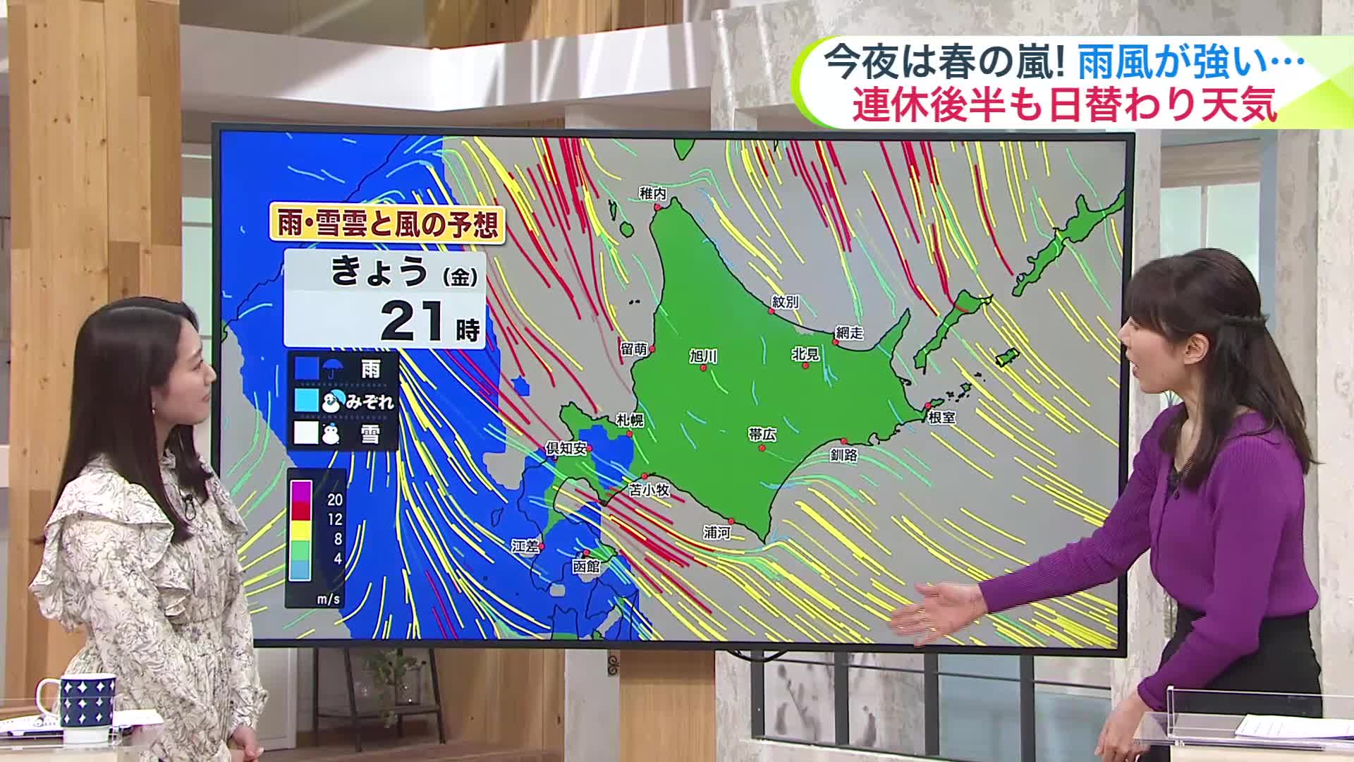 今夜からあす午前中にかけて、雨風ともに強く荒れる所もあるでしょう。