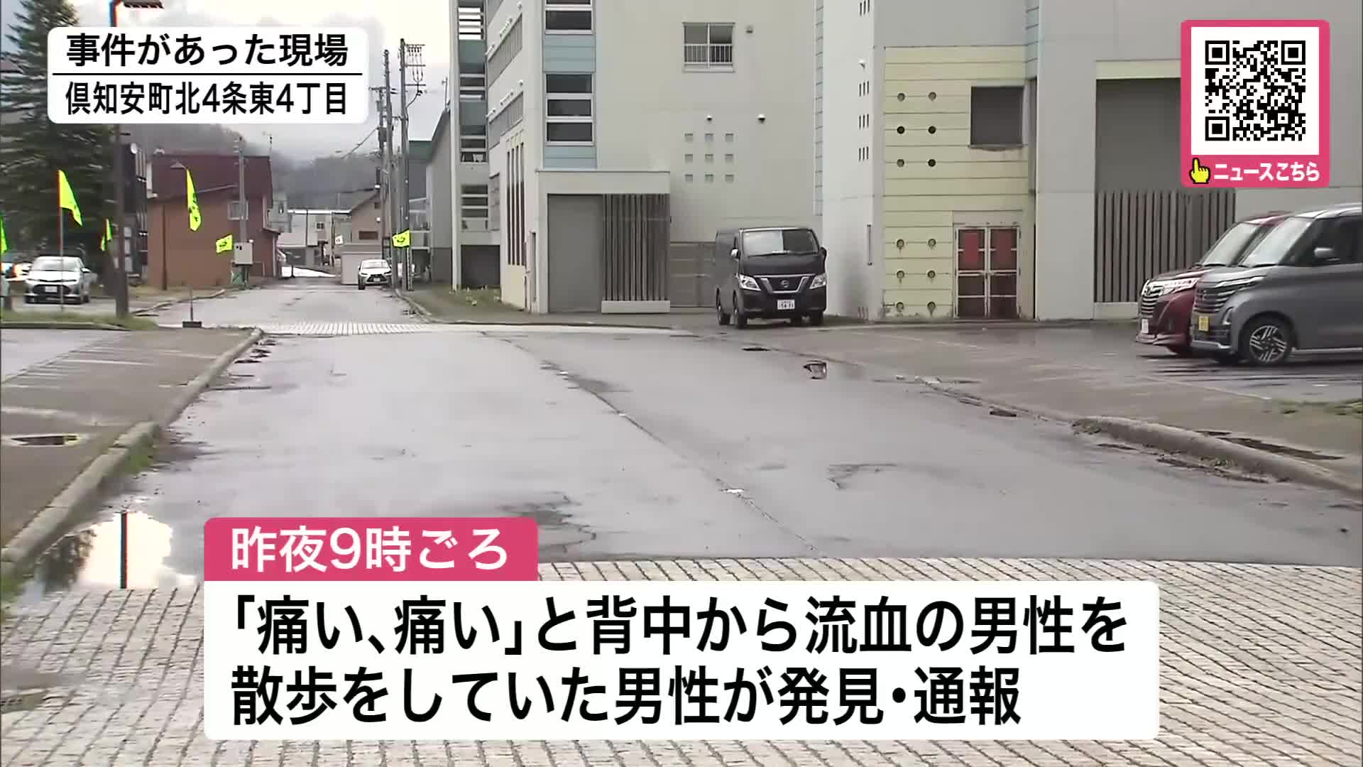 5月3日午後9時ごろ、倶知安町北4条東4丁目の町営住宅の近くで「痛い、痛い」と言って背中から血を流している男性を散歩をしていた男性が発見し、消防に通報しました。