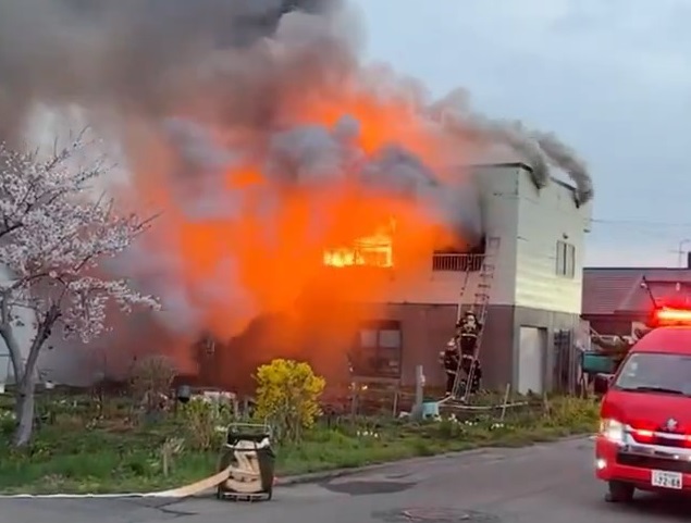 激しく噴き出す炎と煙―2階建て住宅が燃えて住人の50代女性が死亡_警察が出火原因など調べる_北海道当別町