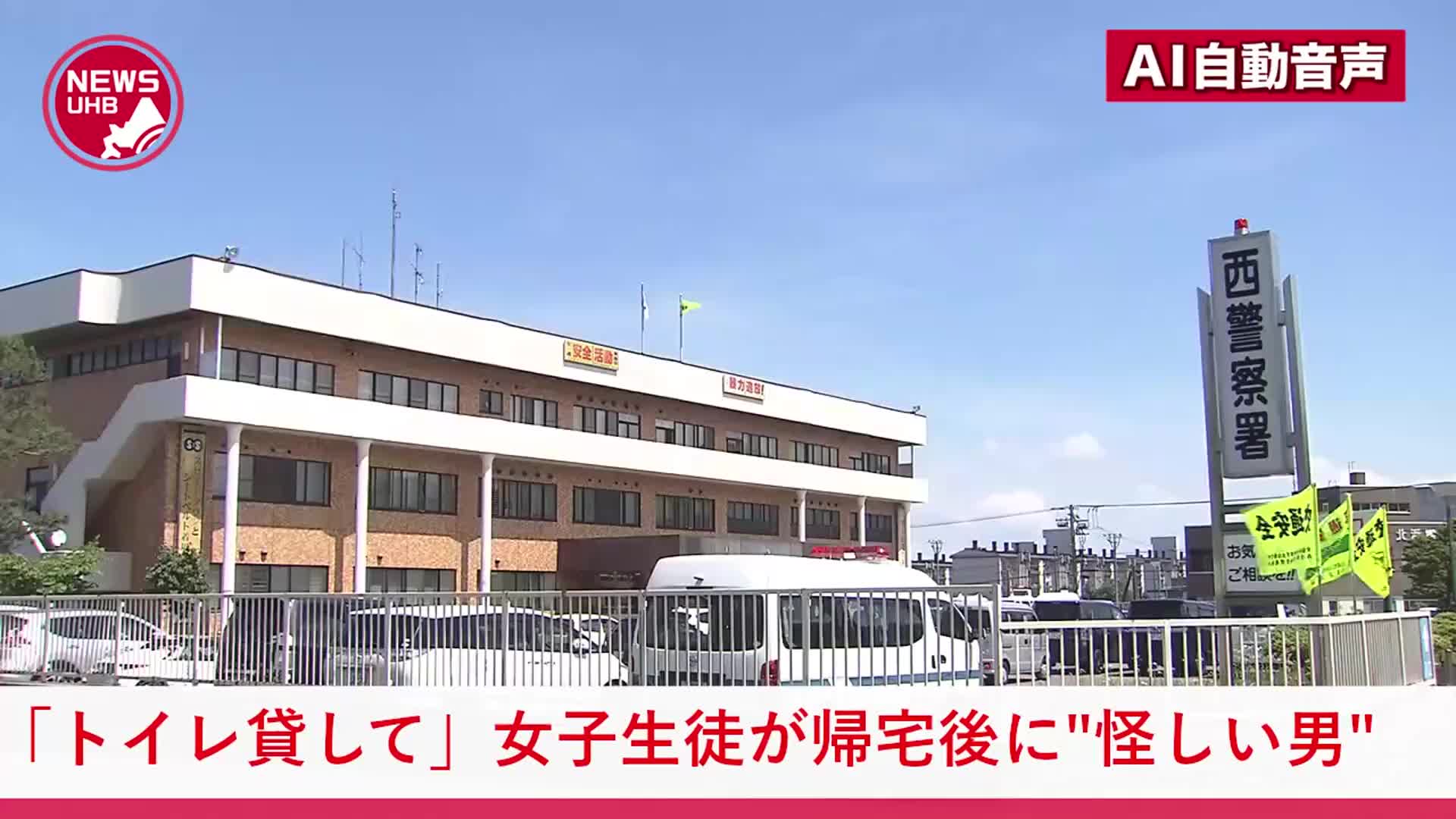 4月28日午後1時30分ごろ、札幌市西区八軒8条西9丁目付近で、帰宅途中に見知らぬ男から声をかけられた女子生徒が自宅に入った直後、家のインターフォンを鳴らされ「トイレを貸してほしい」と求められる事案が発生しました。