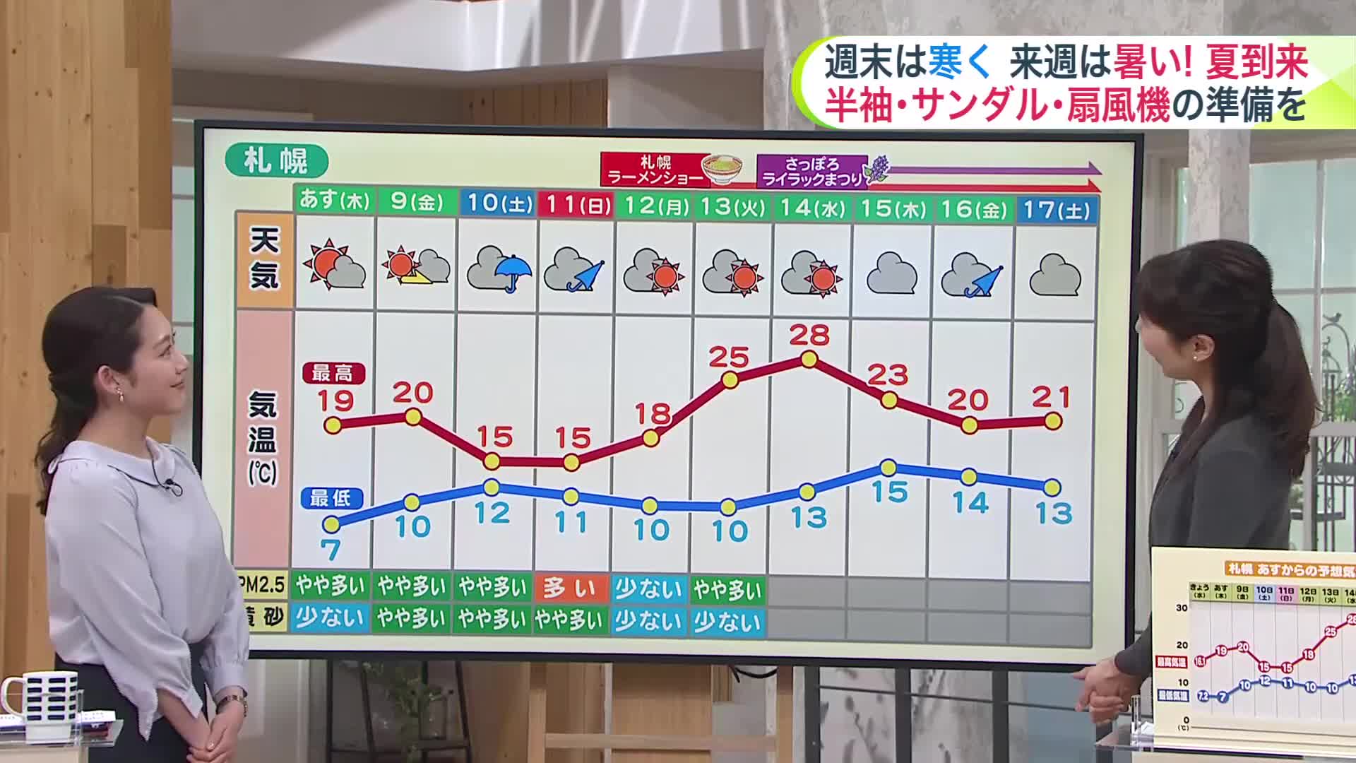 来週になると、晴天が続き、夏を先取りする暑さで、14日(水)は28℃です。