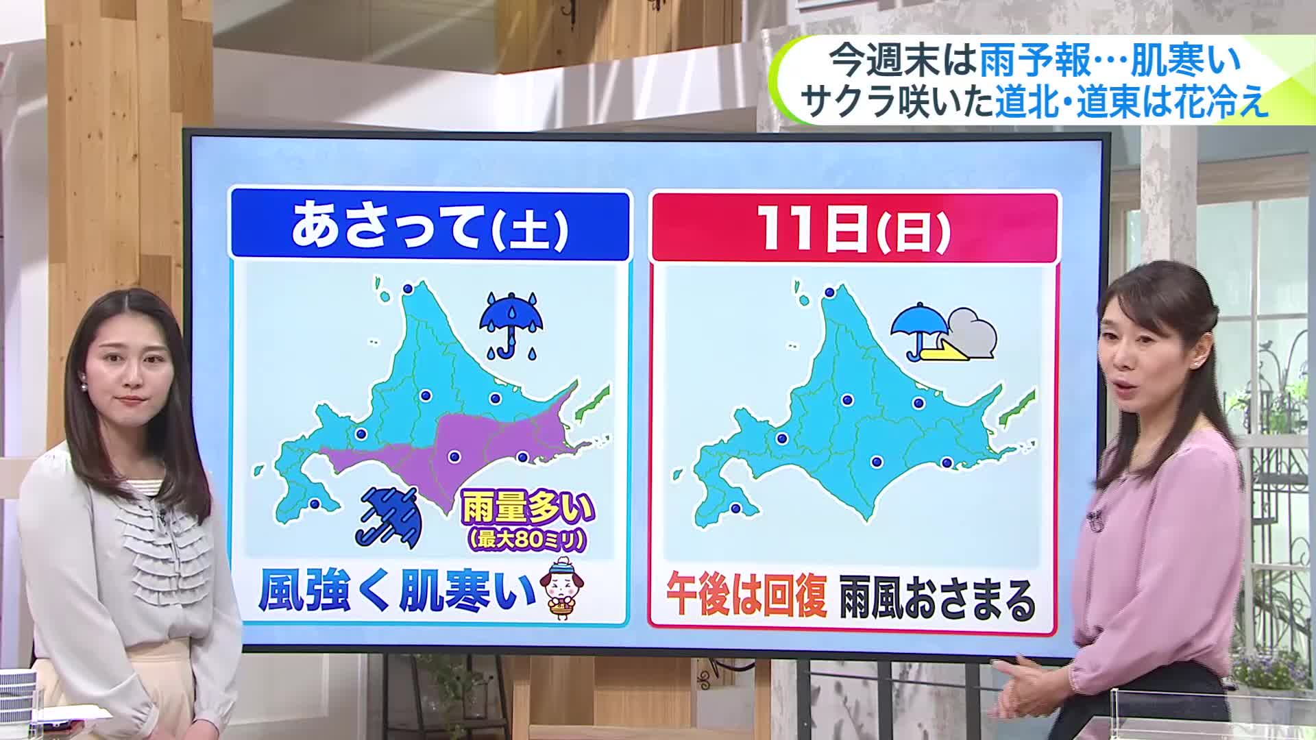 10日(土)は全道的に雨・風ともに強く、太平洋側で雨量が多くなるでしょう。