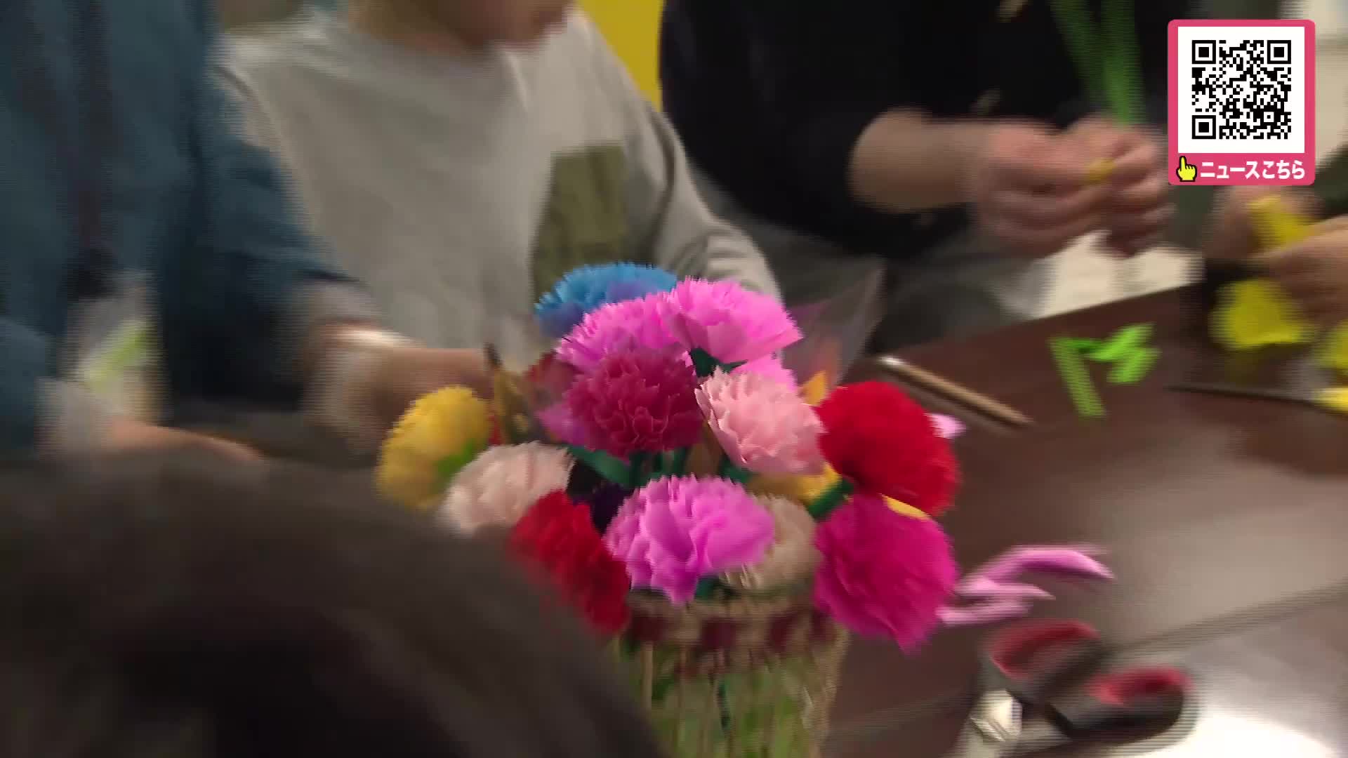 北海道・厚真町では、折り紙でカーネーションを作るイベントが行われました。