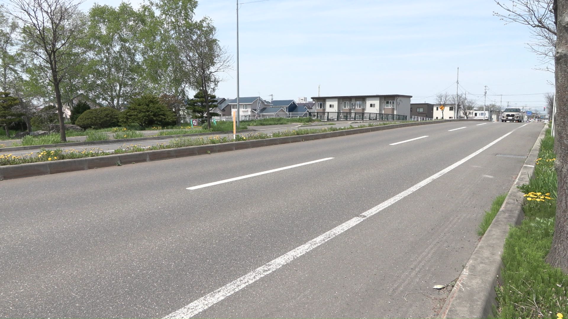 現場は中央分離帯のある片側2車線の直線で信号機などはありません。