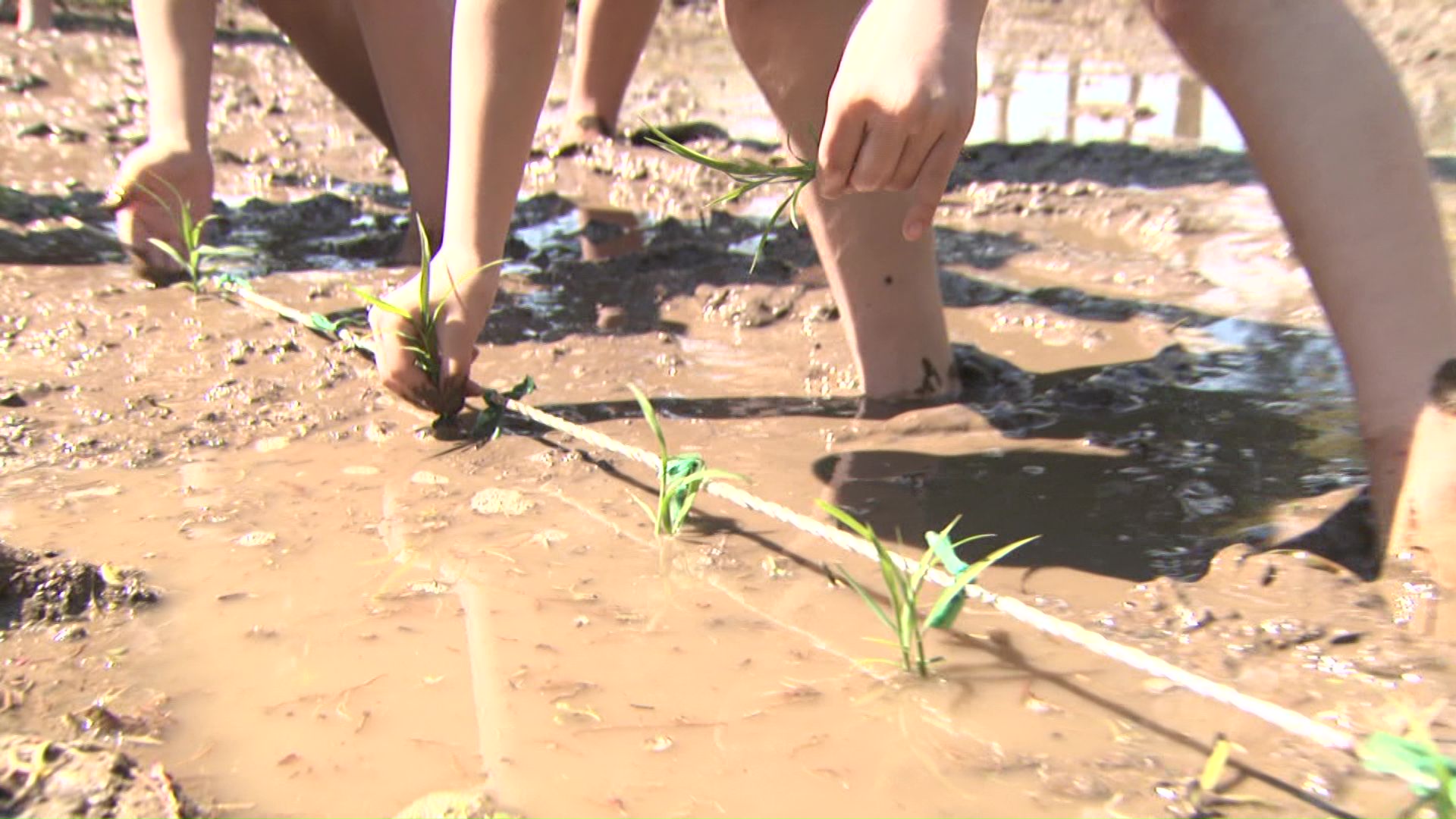 「深い!」「スライムみたい」小学生が北海道米のルーツ”赤毛”の田植えに挑戦―転んで泥んこになる児童も…秋に収穫したコメがおにぎりになって給食に<北海道北広島市>