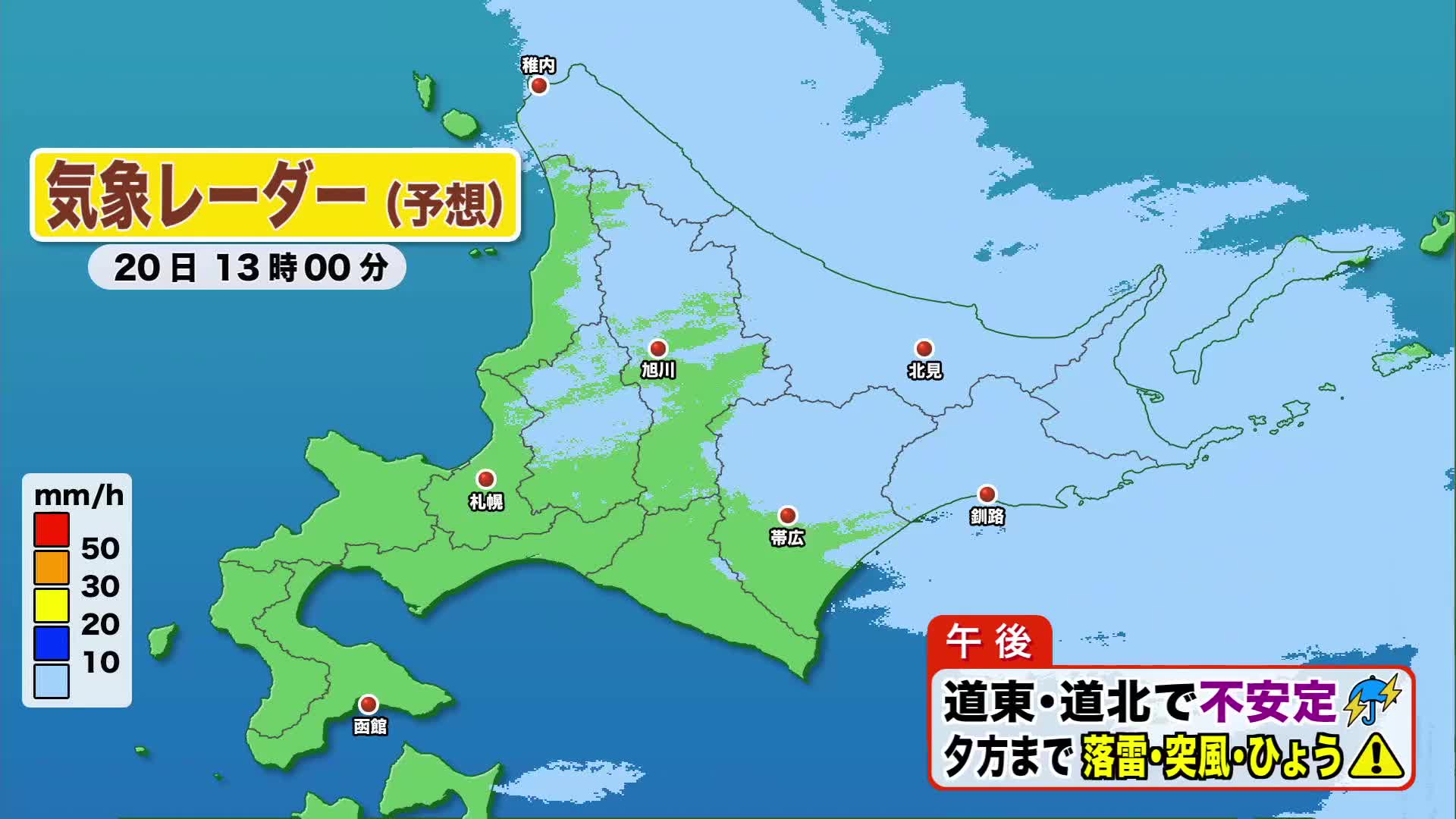 きょう20日(火)の北海道は、活発な雨雲が通過していて、