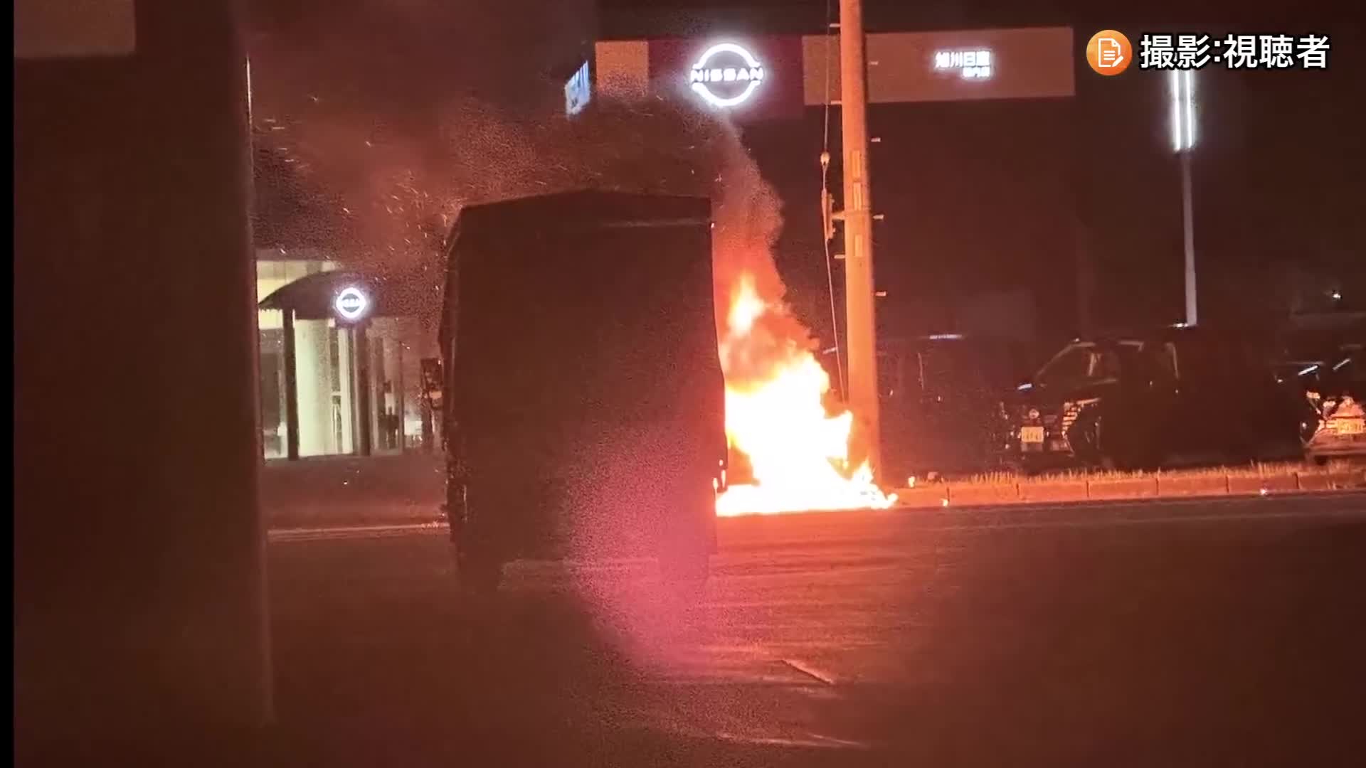 当時、軽乗用車のボンネットから火が出ていて近所の人によりますと、「ドン」という大きな音が複数回、聞こえたということです。