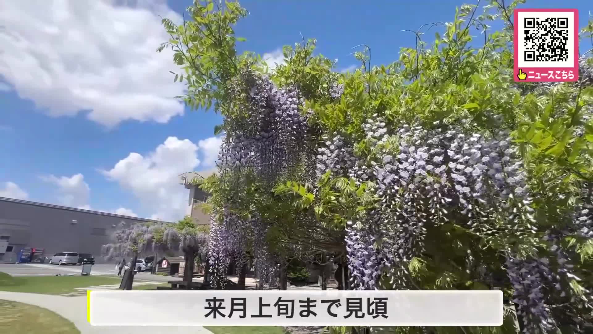 【日本酒の蔵元に藤の花】「男山」で藤棚が見頃…30メートルに渡って美しい紫の花が重なる様子に観光客は「関東ではもう終わりだったので北海道に来てよかった」〈北海道・旭川市〉
