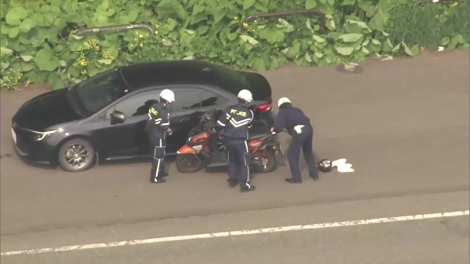 当時前を走るバイクが道路脇の駐車帯に入ろうと右折中に、右側から追い越そうとした崔容疑者の乗用車と衝突したということです。崔容疑者は容疑を認めています。