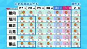 30日の予想最高気温は、旭川で30℃、札幌で28℃など、日本海側と北海道東部で今年一番の暑さとなる見込みです。
