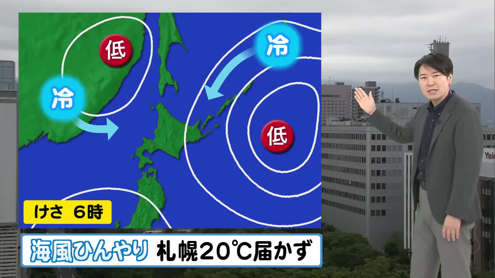 北海道は二つの低気圧に挟まれ、冷涼な空気が流れ込んでいます。