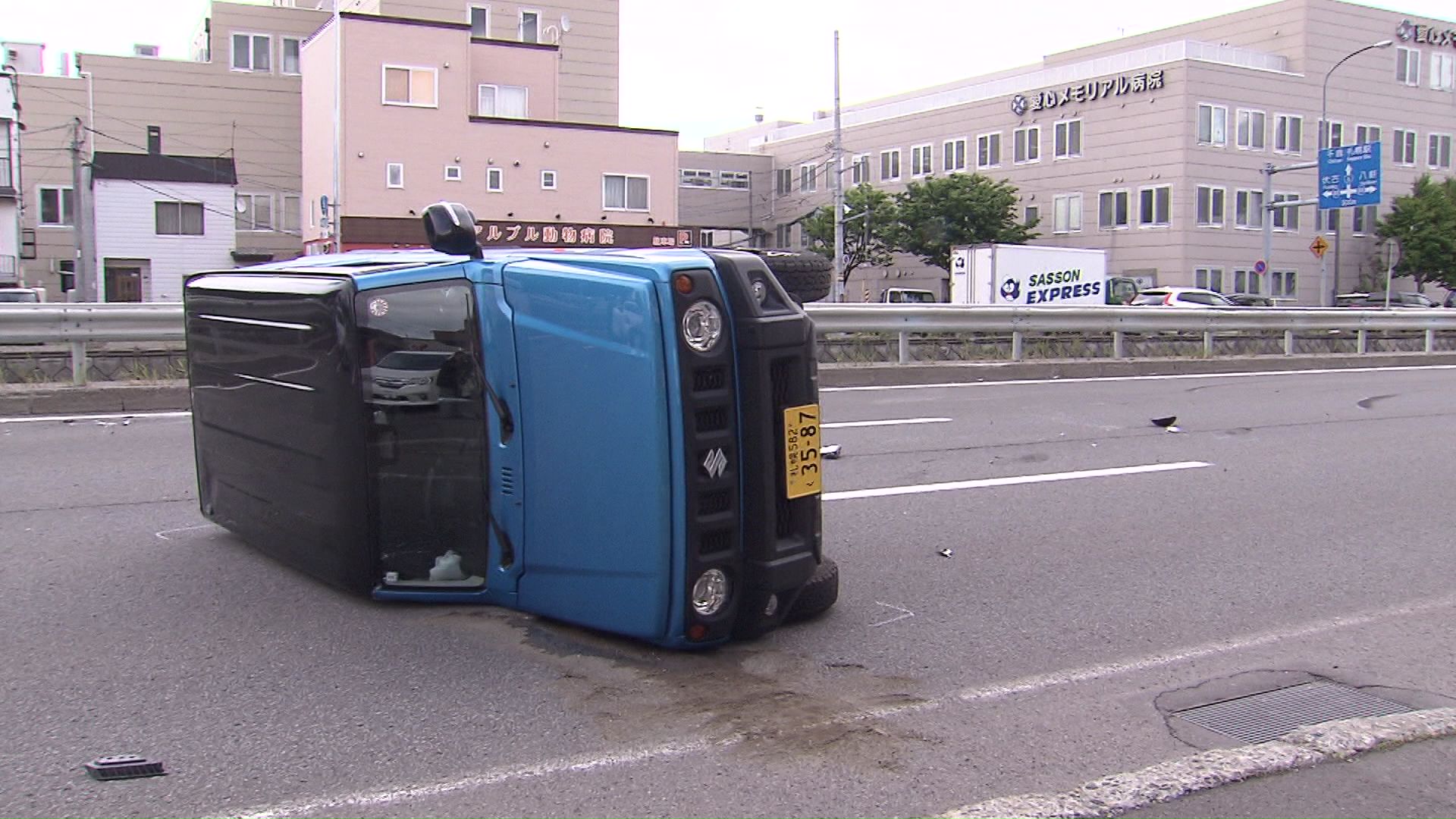 横転し道路をふさぐ軽乗用車―朝の通勤時間帯に“事故”相次ぐ_札幌市では軽乗用車と乗用車が出合い頭に衝突し男性搬送_北広島市でも軽乗用車同士が衝突し男女2人搬送【北海道】