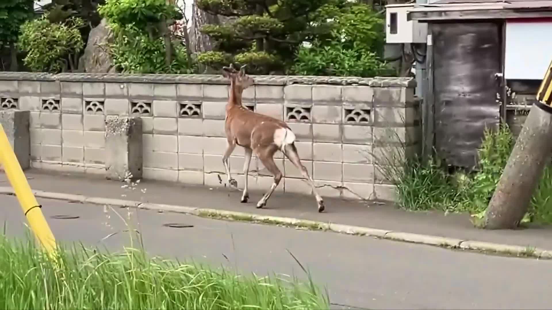 6日、札幌市中央区の住宅街に、野生のオスのシカが現れました。