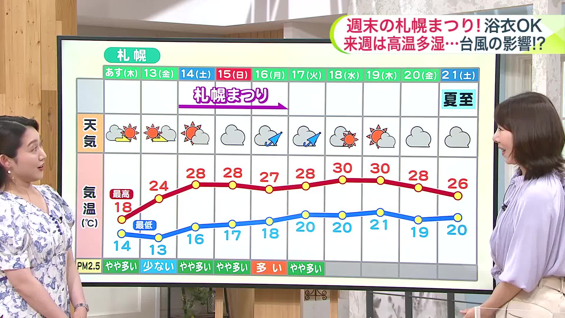 14日(土)は、道東やオホーツク海側で30℃前後まで気温が上がりそうです。