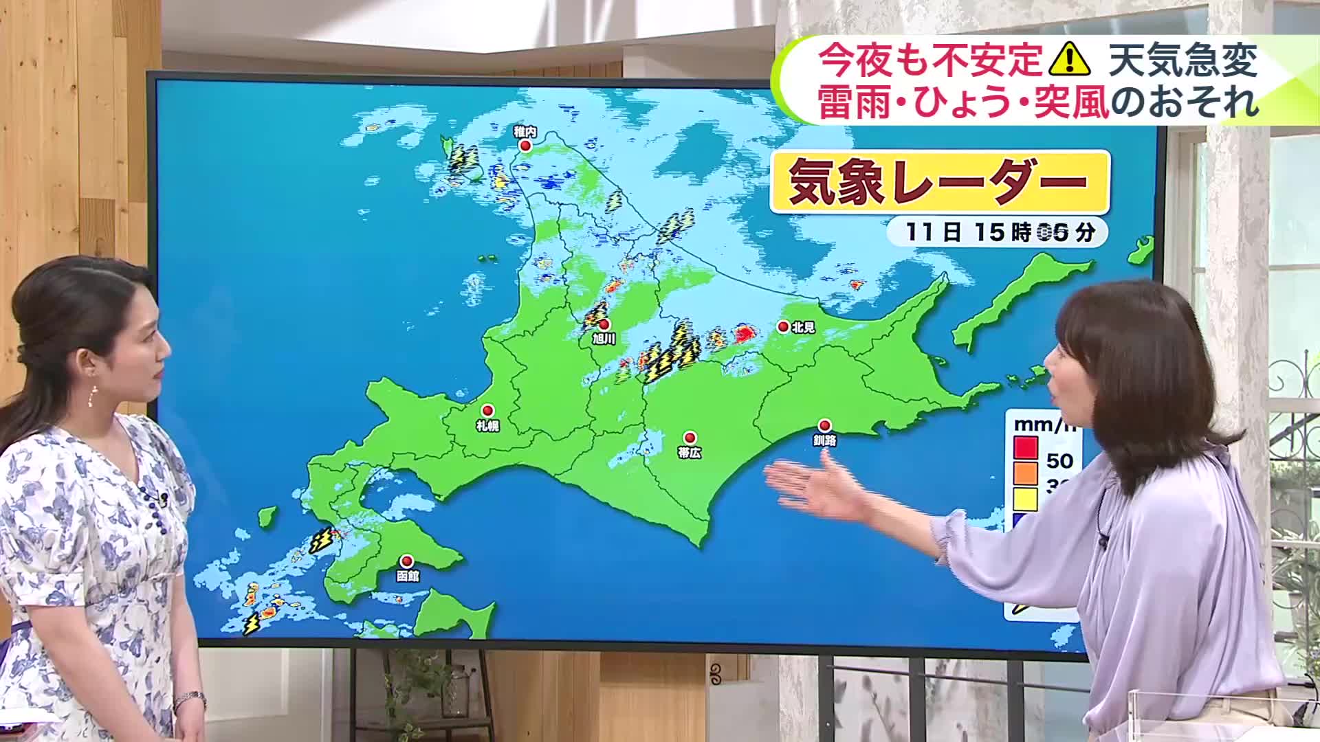積乱雲が発達しやすく、今夜も局地的に荒れそうです。