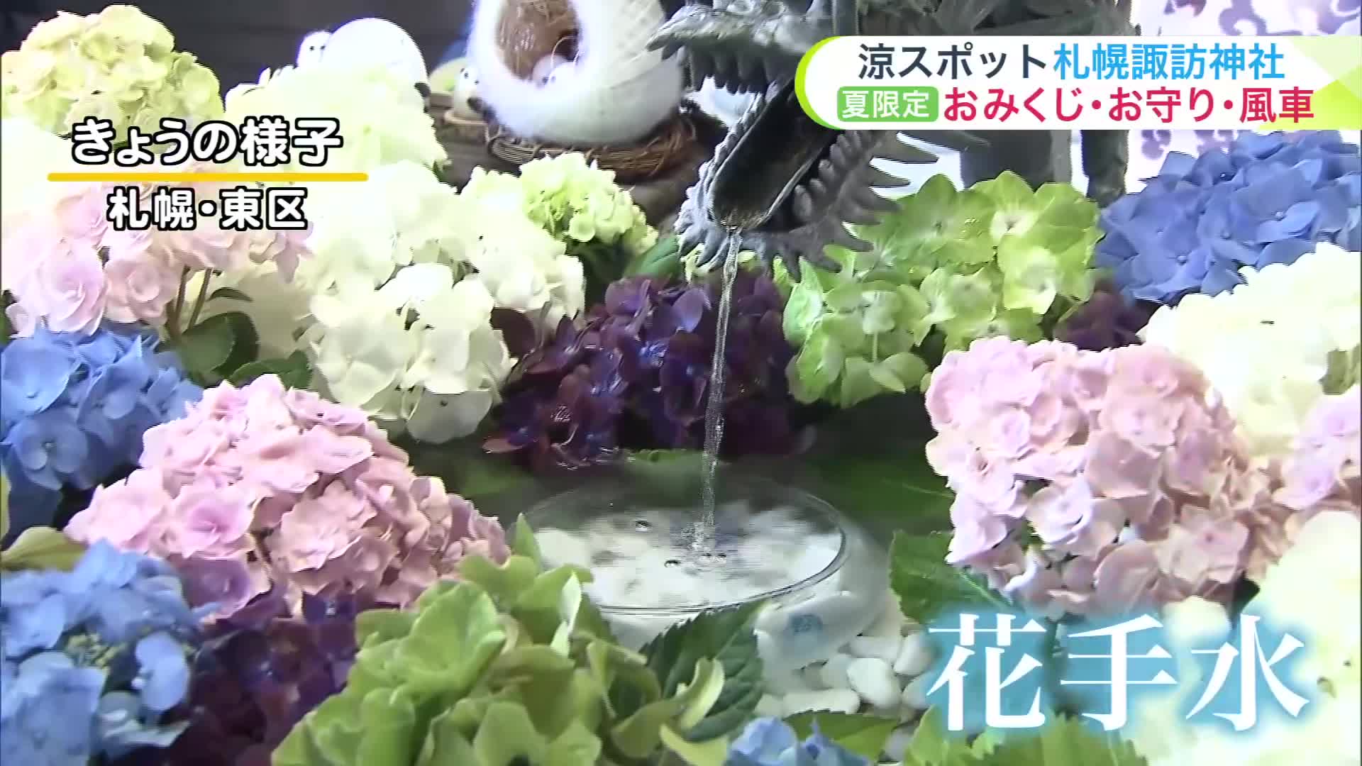 今月は「夏を感じる」をテーマに、アジサイが浮かべられ、