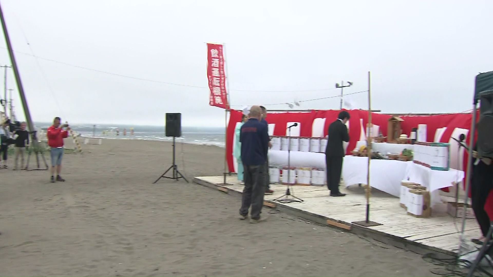 「寒い寒い!」北海道内で1番早い『海開き』おたるドリームビーチ_きょうは肌寒いけど…安全祈願祭に参加した園児たちが元気いっぱい波打ち際で遊ぶ“ことしは8月31日まで営業”〈北海道小樽市〉