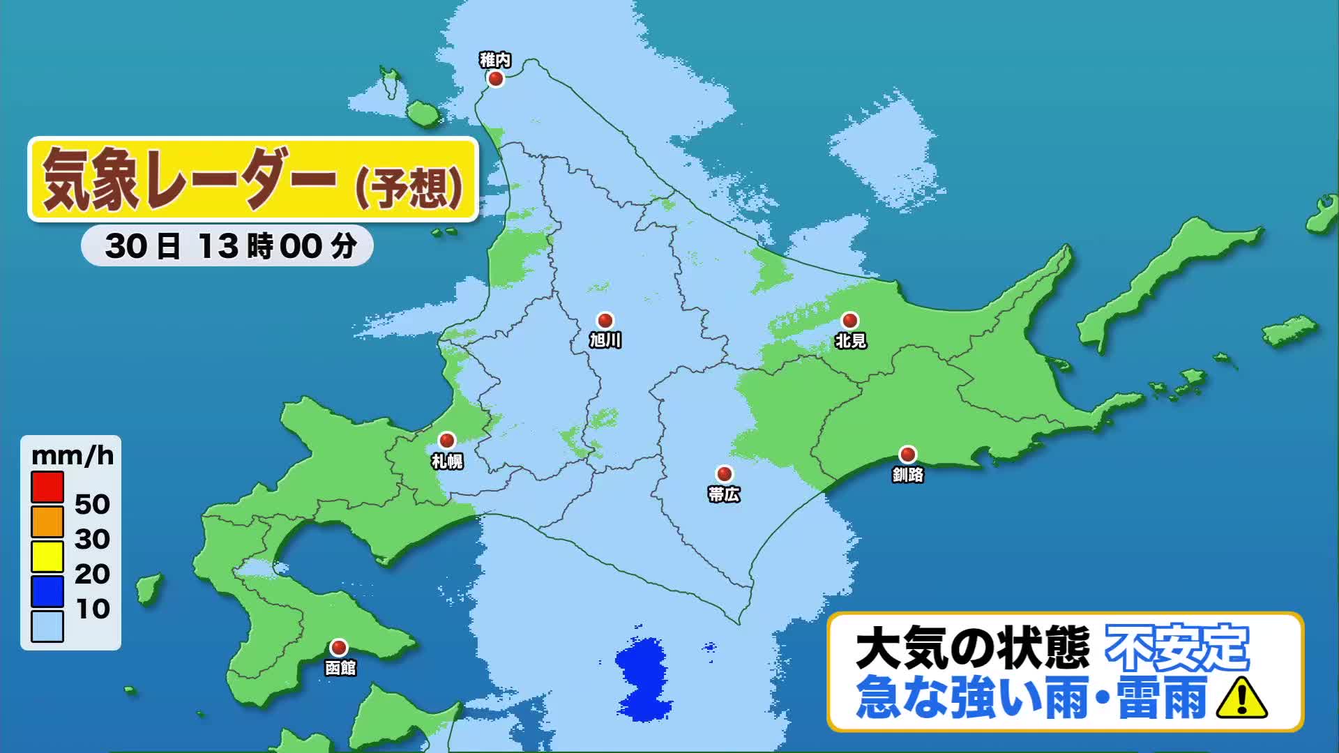 きょう30日(月)の道内は、大気の状態が不安定となっています。
